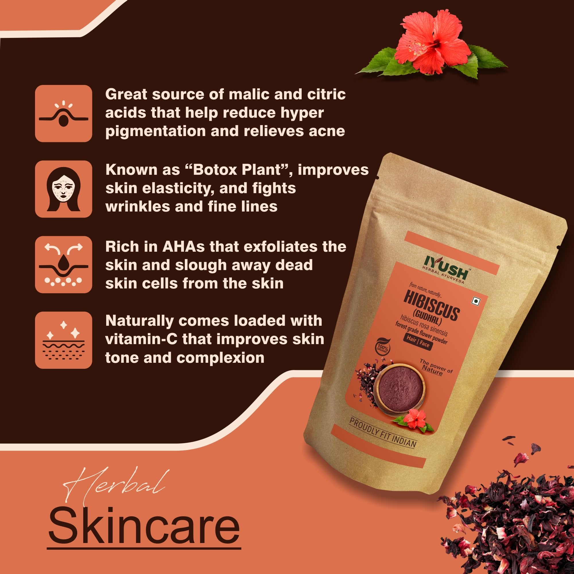 Hibiscus or Gudhal also known as Hibiscus rosa-sinensis is a natural herb that has been used for centuries in Ayurveda for numerous health skin and hair benefits. It is an organic natural powder made from shade dried wild forest grade Hibiscus flower that contain the highest active nutrients grown naturally without any harmful chemicals or pesticides or fertilizers.