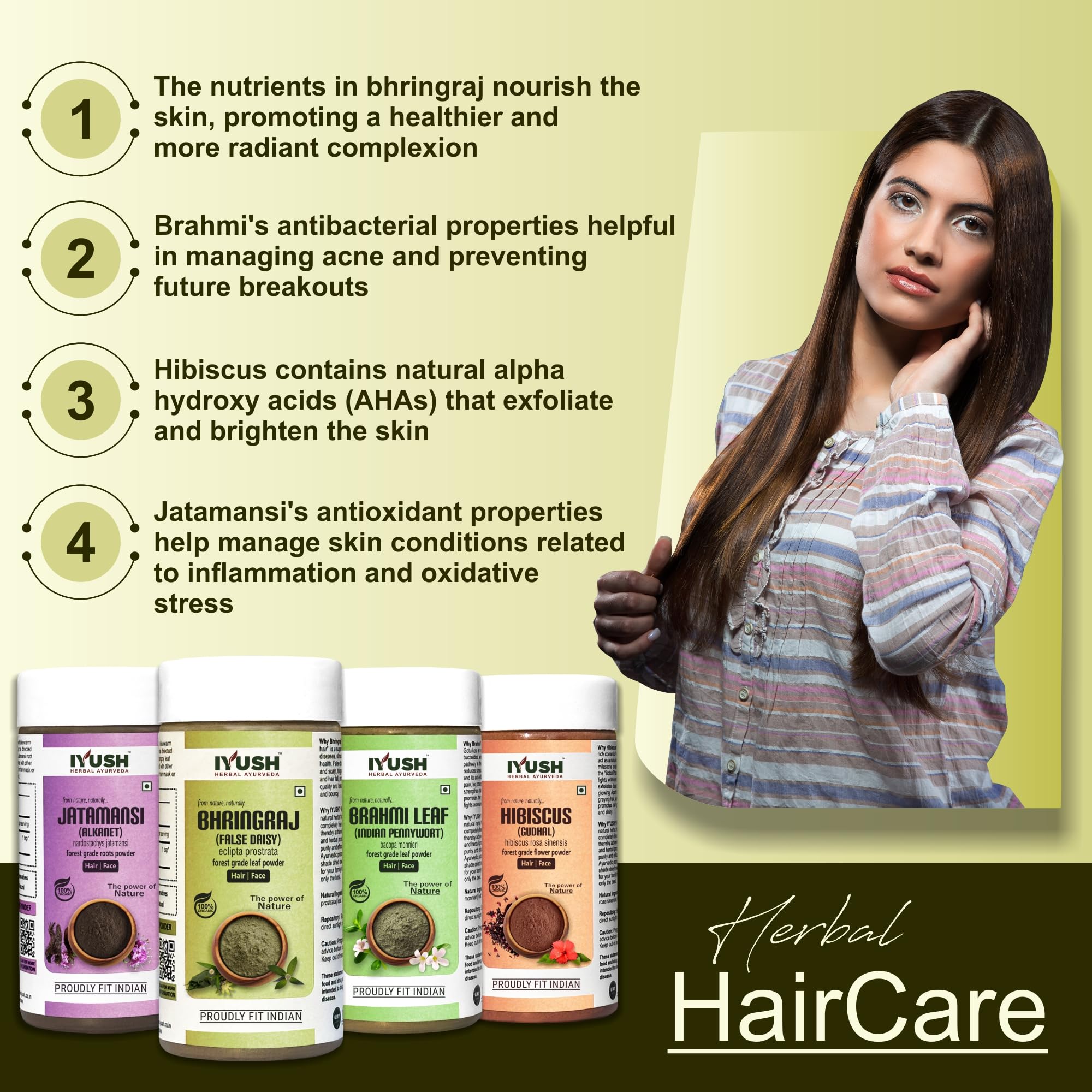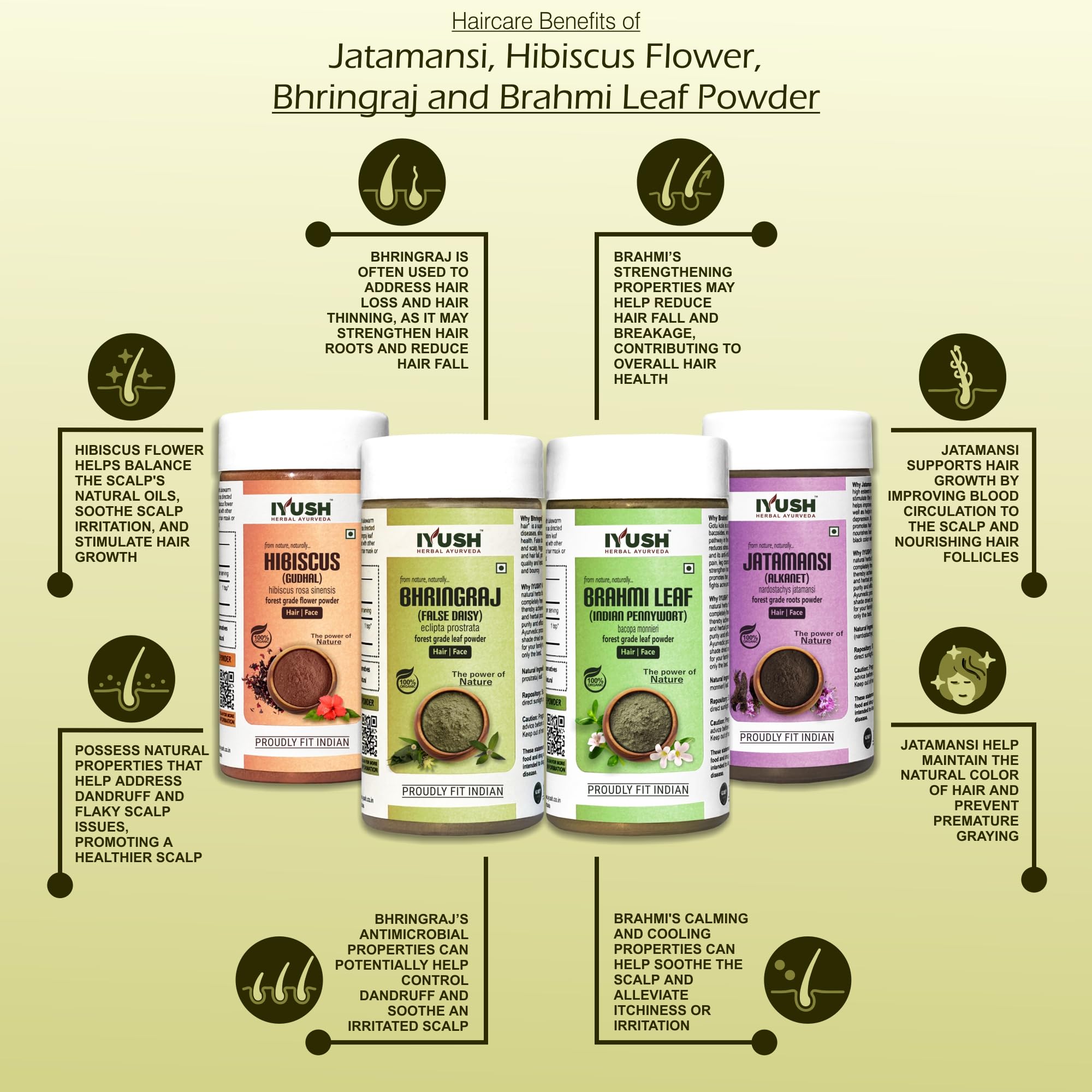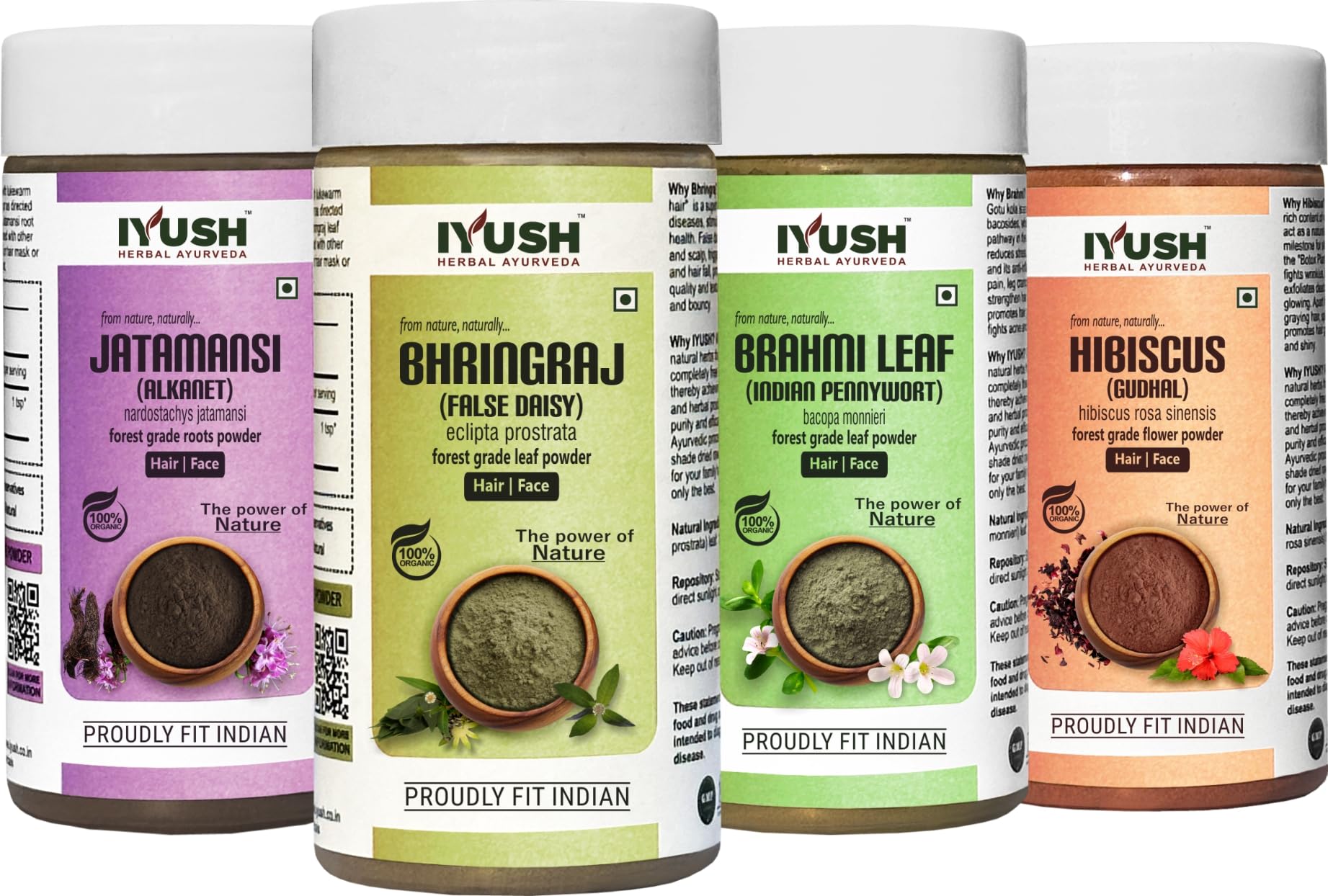 IYUSH Herbal Ayurveda Jatamansi Brahmi Bhringraj and Hibiscus Powder for Hair Growth - 100gm each