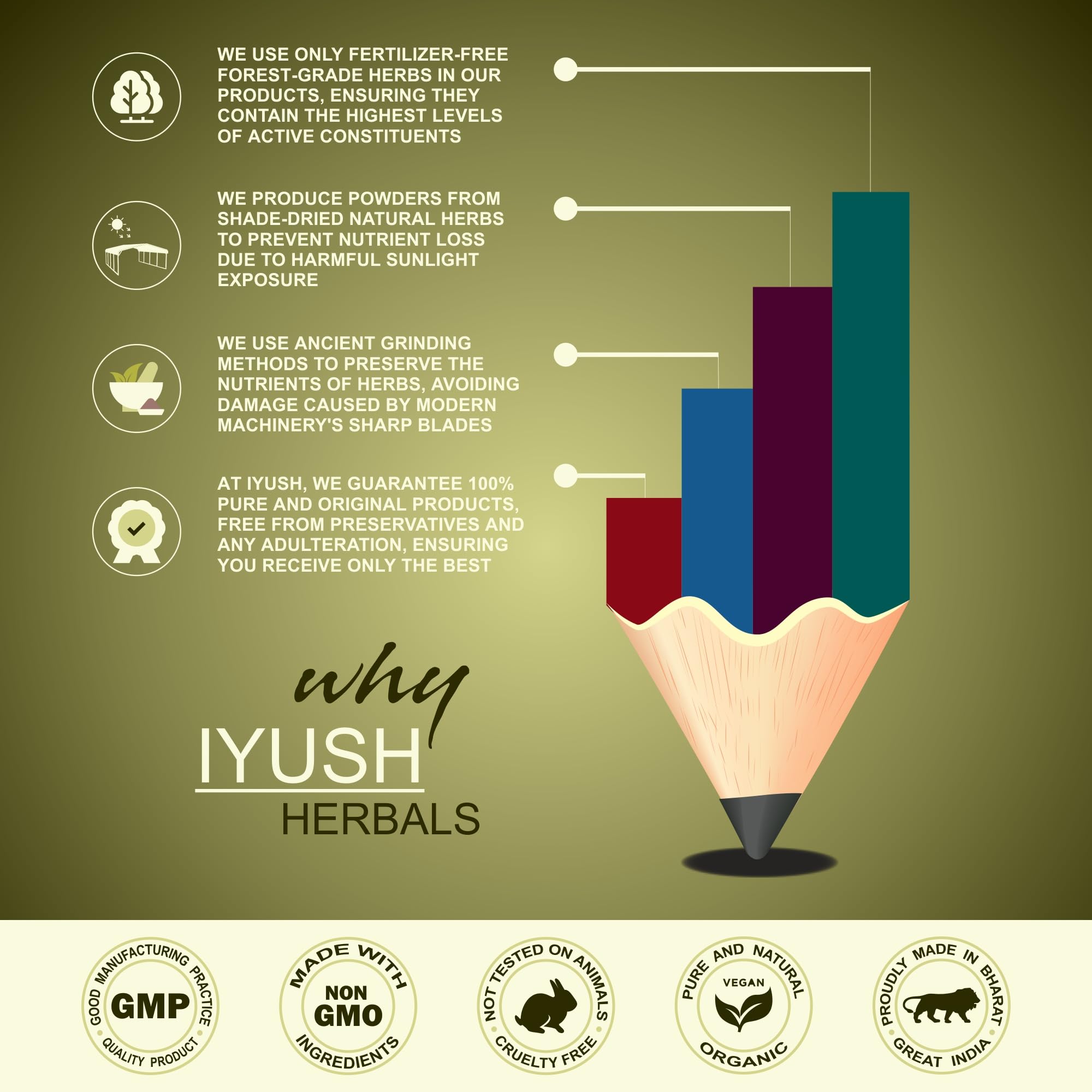 For exceptional purity and efficacy we strictly follow the ancient Ayurvedic process (as written in the Vedas) to grind organic raw herbs collected from the dense forest.