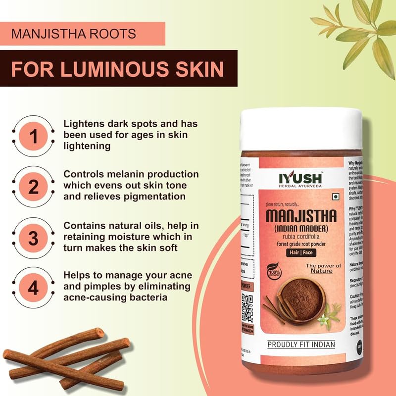IYUSH Herbal Ayurveda Manjistha Powder - (pack Of 2) 100gm each