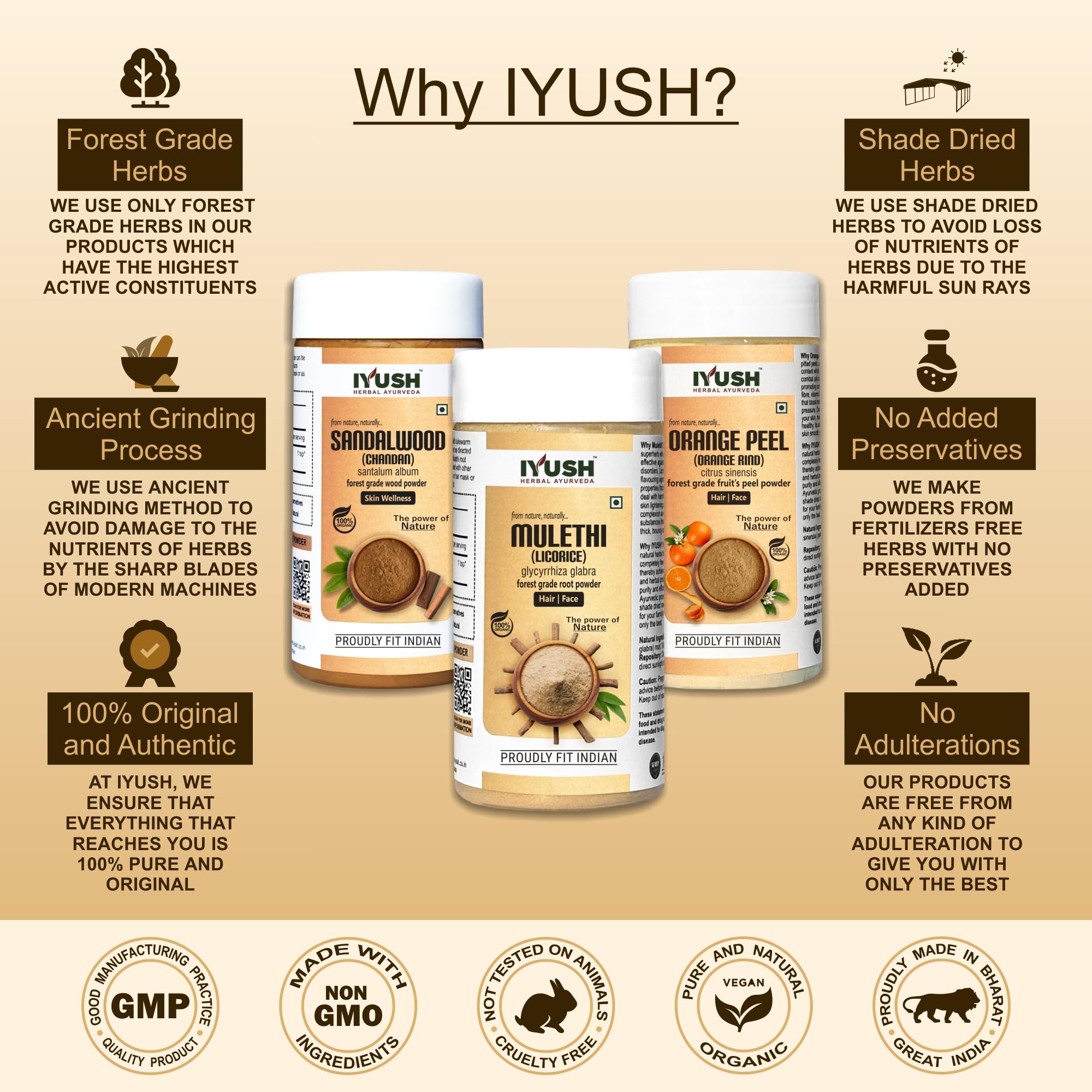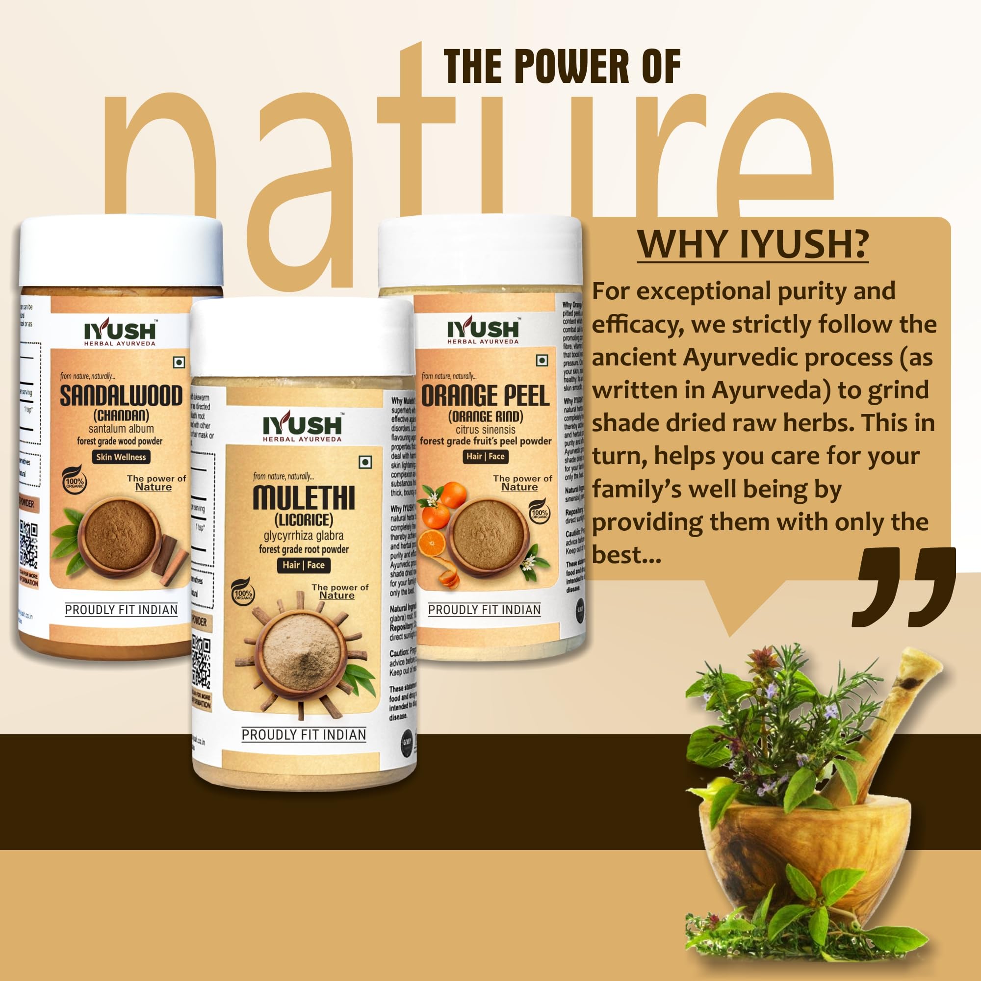 IYUSH Herbal Ayurveda OrangeChandanMulethi Combo Powder - 100gm each