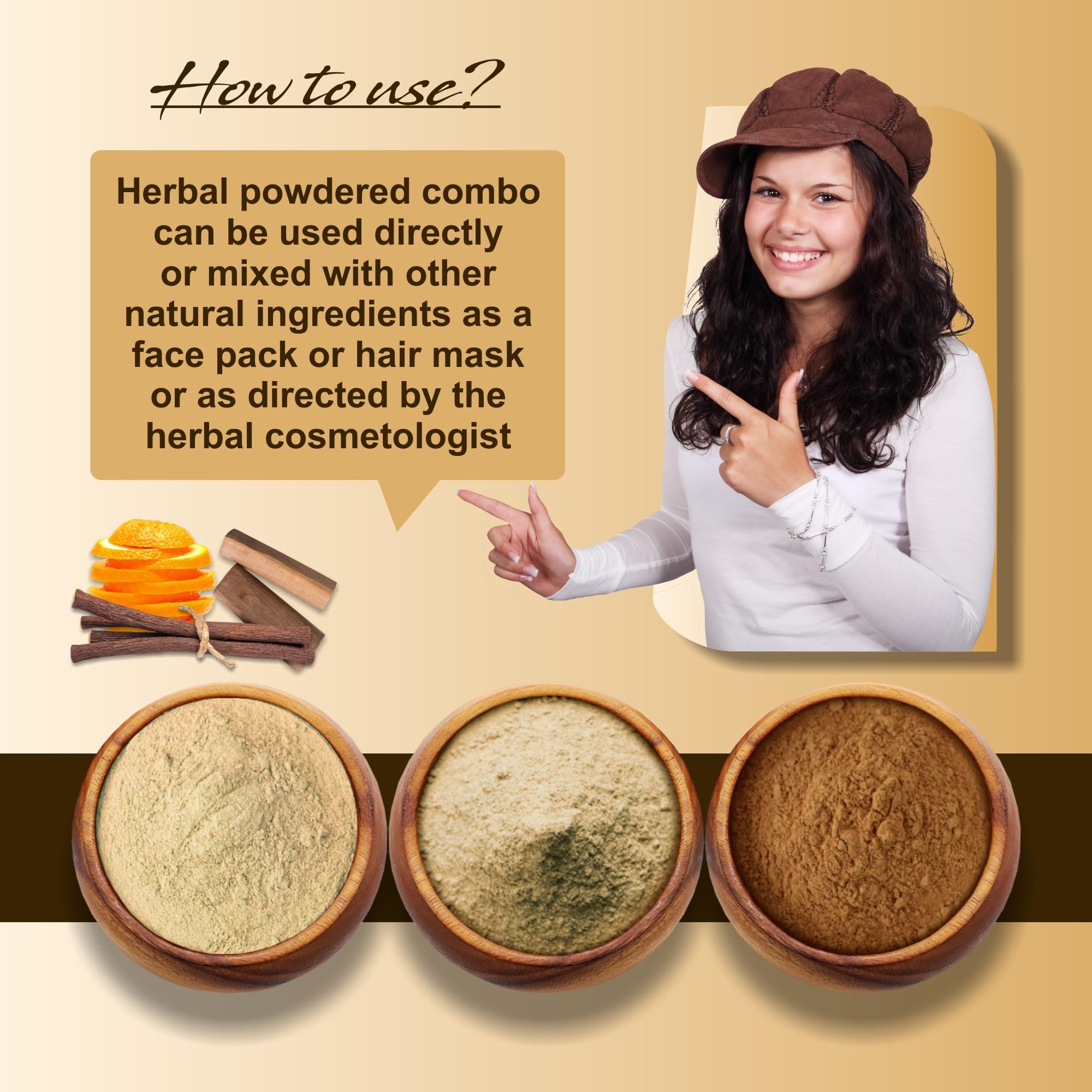 Orange peel + Sandalwood + Mulethi herbal ayurvedic combo is a perfect combination of orange fruit's peel sandalwood mulethi root powder. Organically cultivated forest raw variety is used to give you the best results