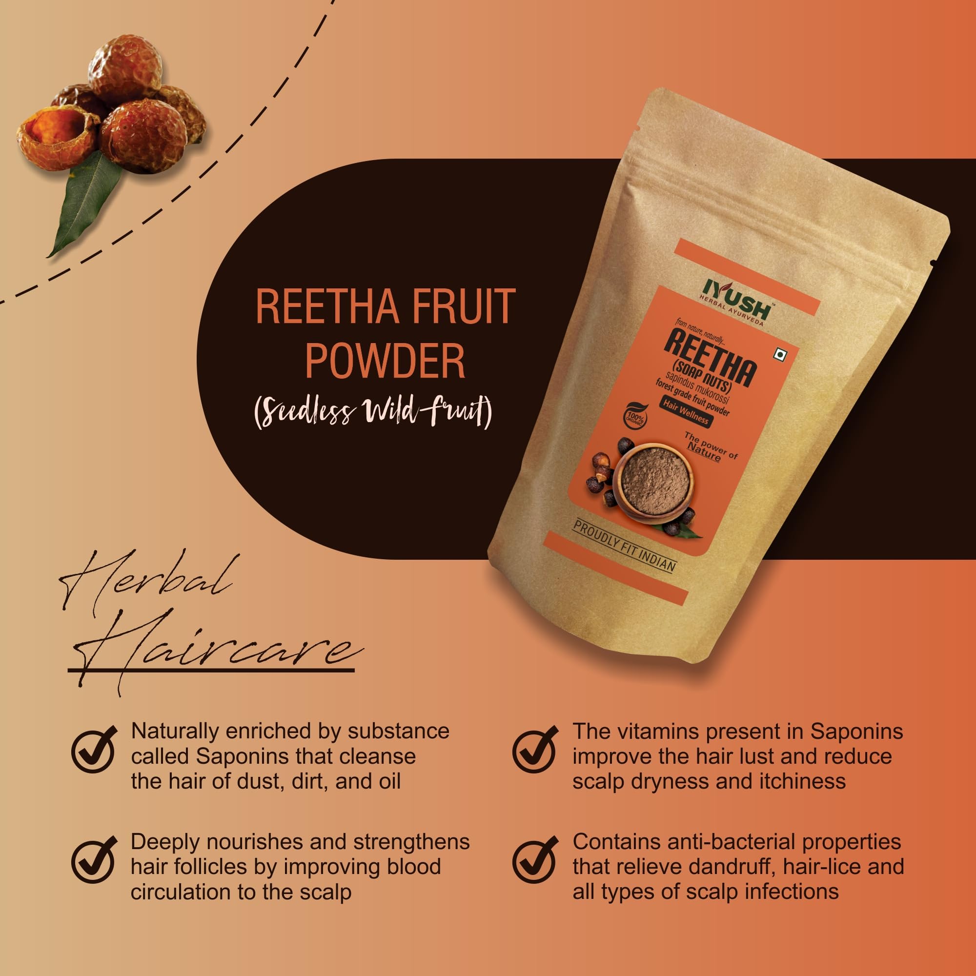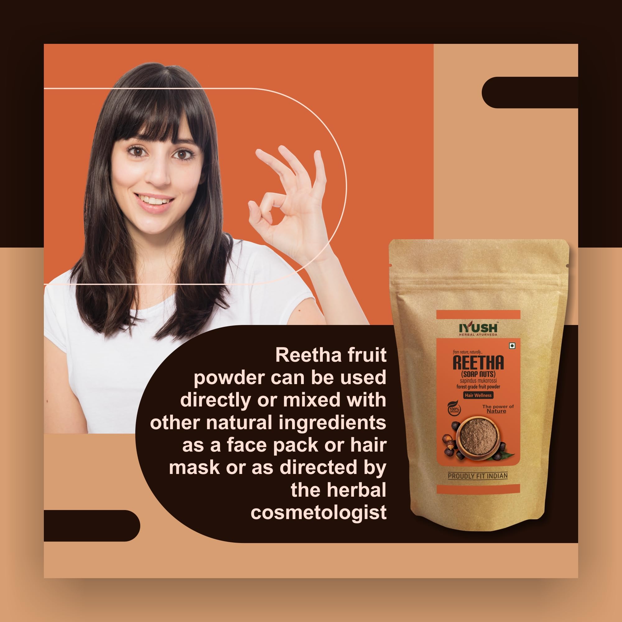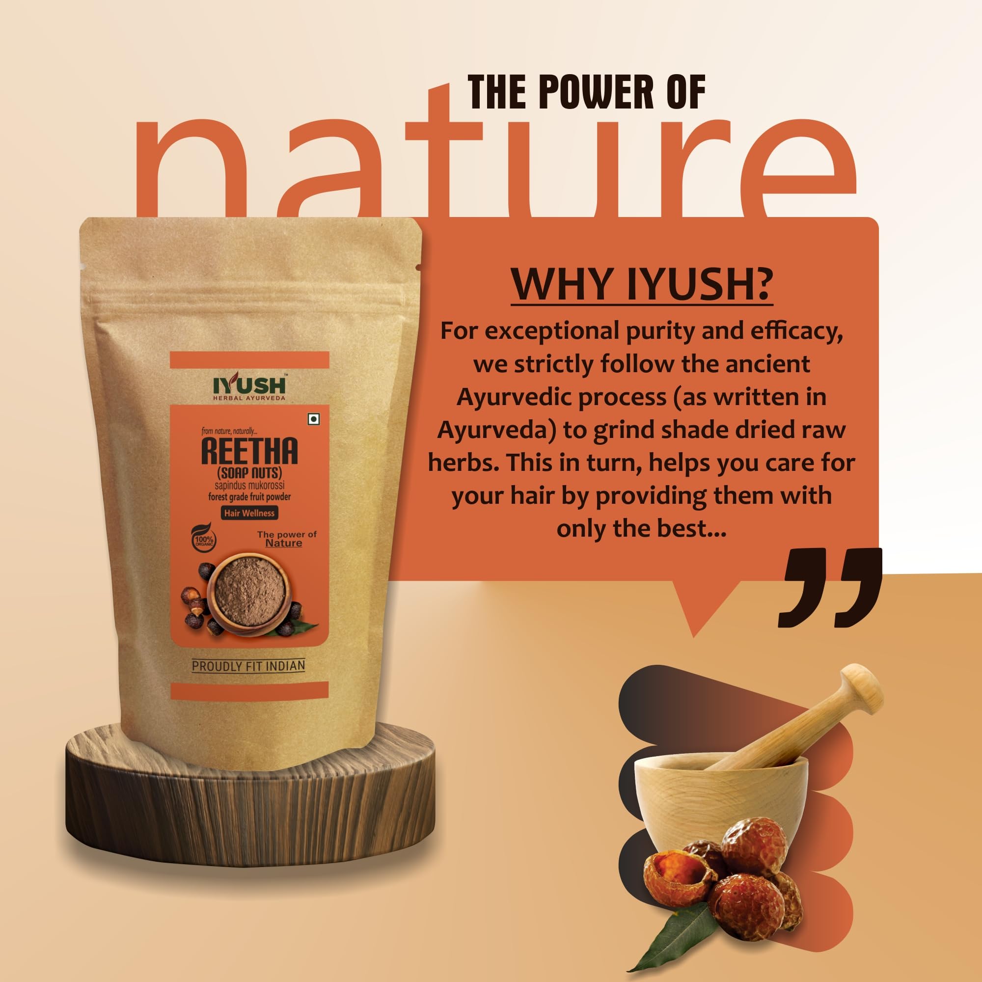 IYUSH Herbal Ayurveda Reetha Powder for Hair Growth 900gm | Reetha Powder for Hair Wash | Soapnut Powder for Hair | Soap Nuts Powder for Hair Wash | Hair Volume Powder | Herbal Hair Wash Powder |