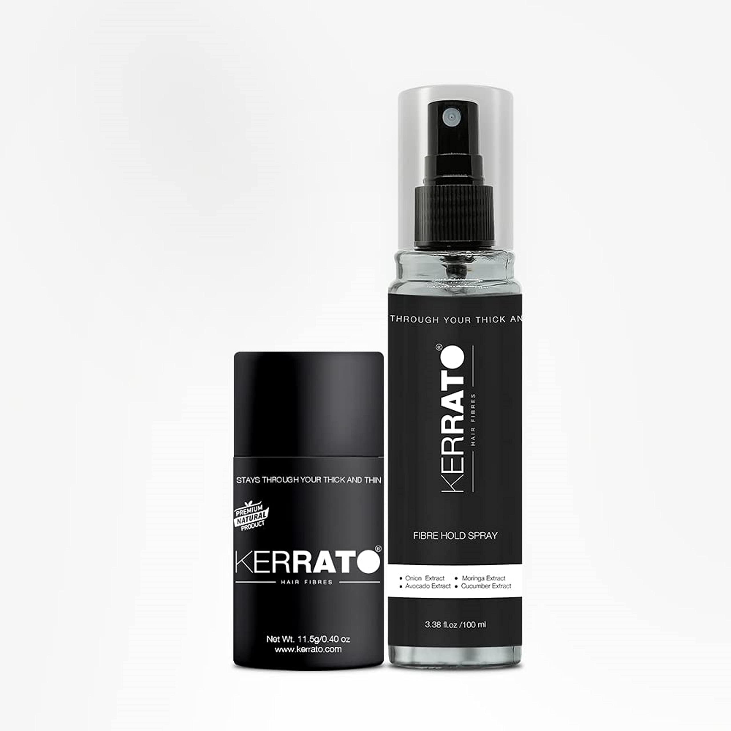 Kerrato Hair Fibres Combo Pack - 11.5g Natural Black Hair Fibers & 100ml FibreHold Spray | Instant Hair Loss Concealment | Long-Lasting Natural Look | Safe & Effective Hair Thickening Solution