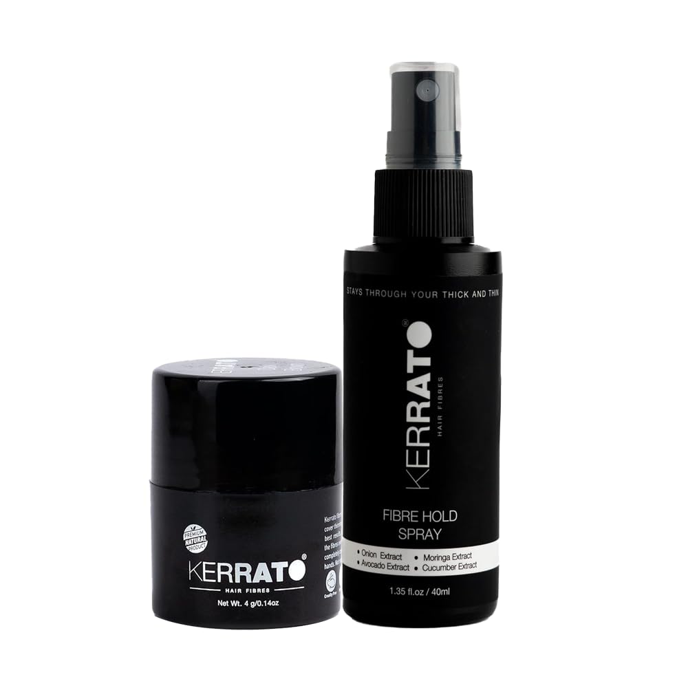 Kerrato Hair Fibres Combo Pack - 4g Hair Fibers & 40ml FibreHold Spray | Instant Hair Loss Concealment | Long-Lasting Natural Look | Safe & Effective Hair Thickening Solution (Natural Black)