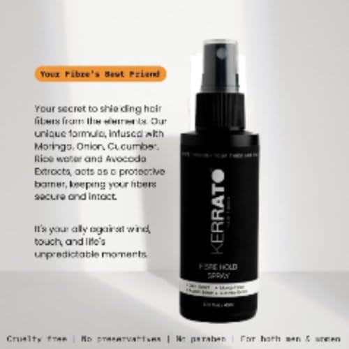 • Kerrato FibreHold Spray helps your fibres stay intact with your hair through extreme sweat wind and any other vigorous factors.Our Kerrato Hair Fibres Locking Spray is packed with the nourishing goodness of moringa avocado onion and cucumber extracts. Ove