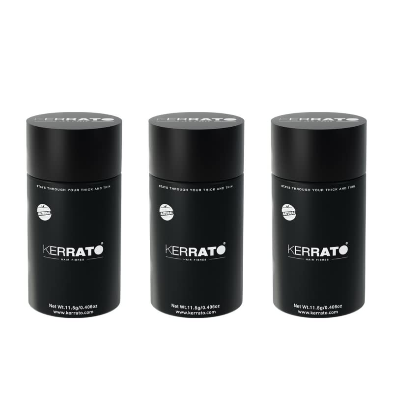 Kerrato Hair Fibres for Thinning Hair (NATURAL BLACK) Natural - 11.5g - Pack of 3 - Conceals Hair Loss in 10 seconds - Natural Hair Thickener & Fibers for Men & Women