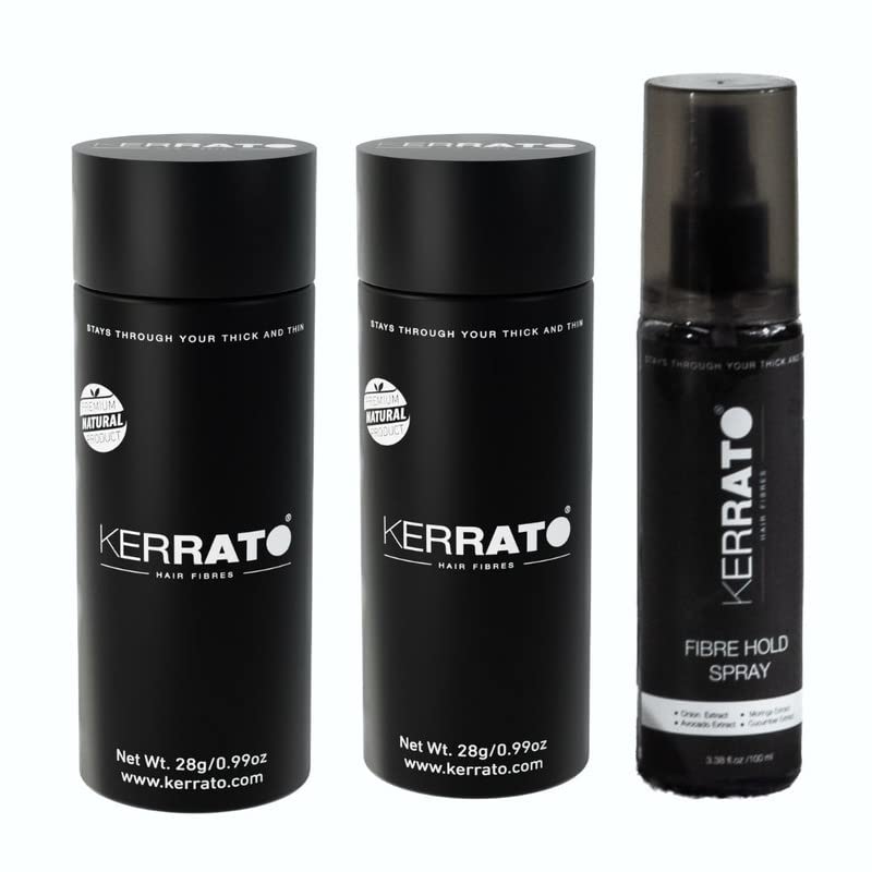 Kerrato Hair Fibres for Thinning Hair (NATURAL BLACK) Natural - 28g + 28g + Fibre Hold Spray - Conceals Hair Loss in 10 seconds - Long Lasting Fibre Hold