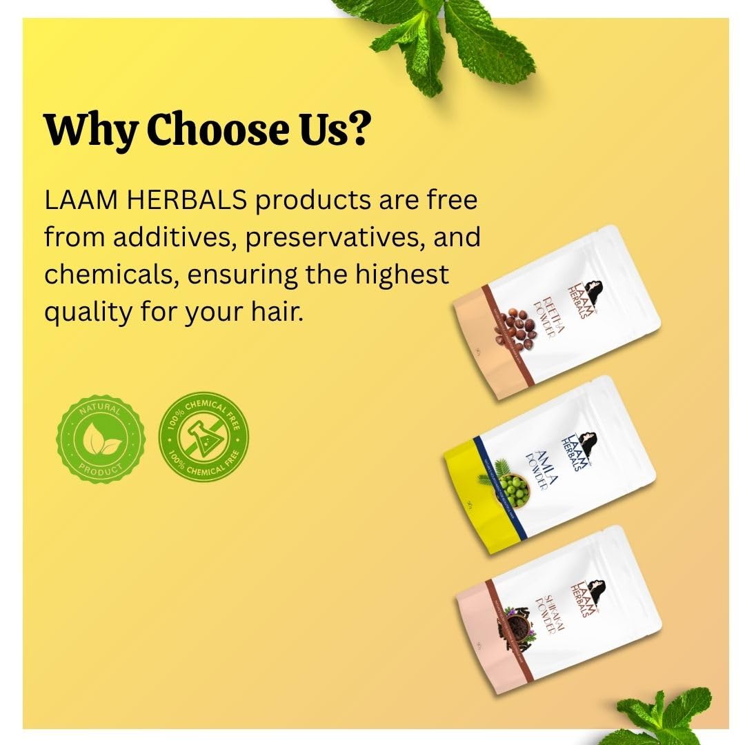 Laam Herbal AMLA REETHA SHIKAKAI powder is made from shade-dried fresh Fruit & Pods. The triple-sifted process makes it a lump-free powder that is easy to apply over face skin and hair. There is no chemical added to this powder that may cause harm to your hair or skin. Completely Pure Powders that has no added chemicals & Preservatives Synthetic additives or any other kind of impurities to be precise. These hair pack powders are made from drying and grounding grown handpicked organically grown Amla Reetha shikakai specially for use on hair and skin. Mixing small quantity of all can solve several hair & scalp related problems