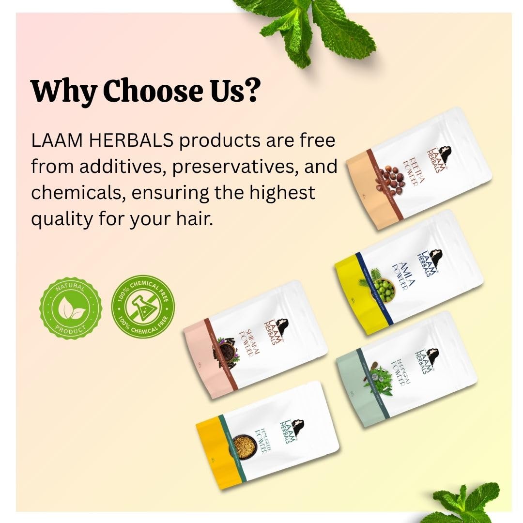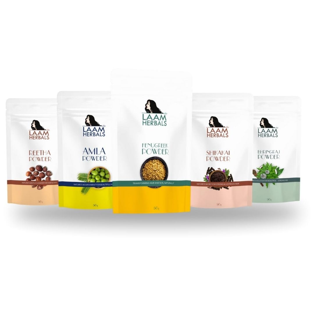 Laam Herbals Amla Reetha Shikakai Bhringraj & Methi Powder | Pure & Natural | Hair Mask Dry Hair Wash | For Long Hair Strong & Natural Looking Hair (5X50 g)