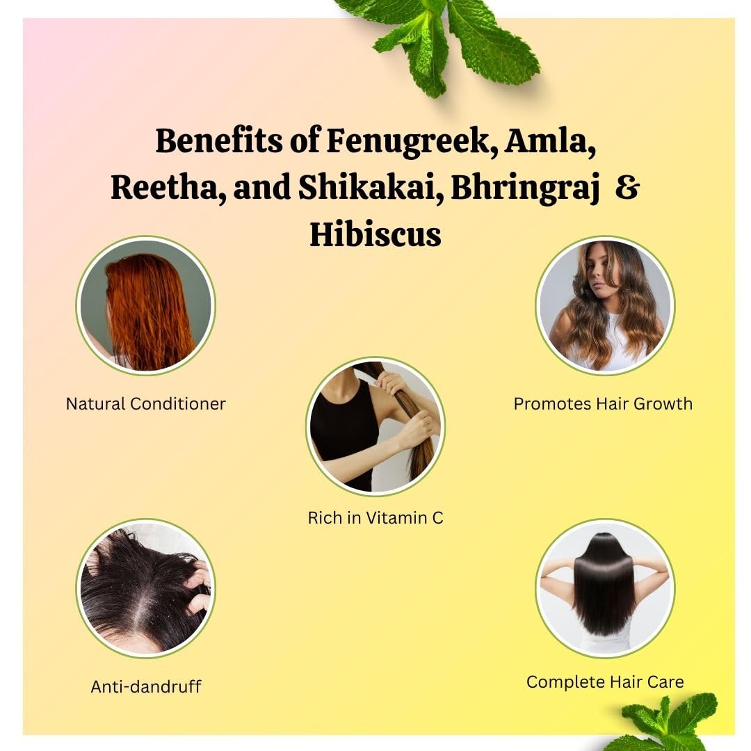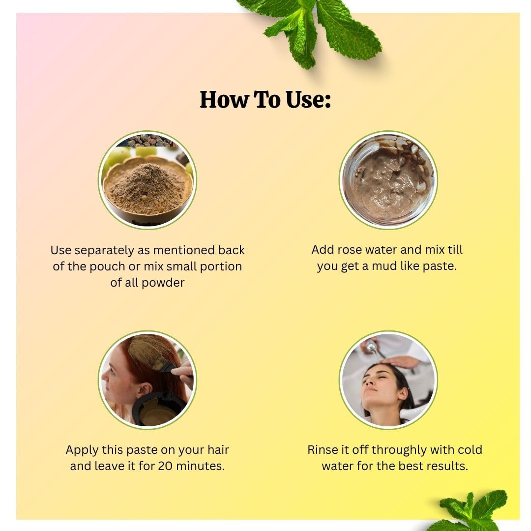 • Nourishes and conditions: These herbal powders nourish and condition hair and skin and strengthens.