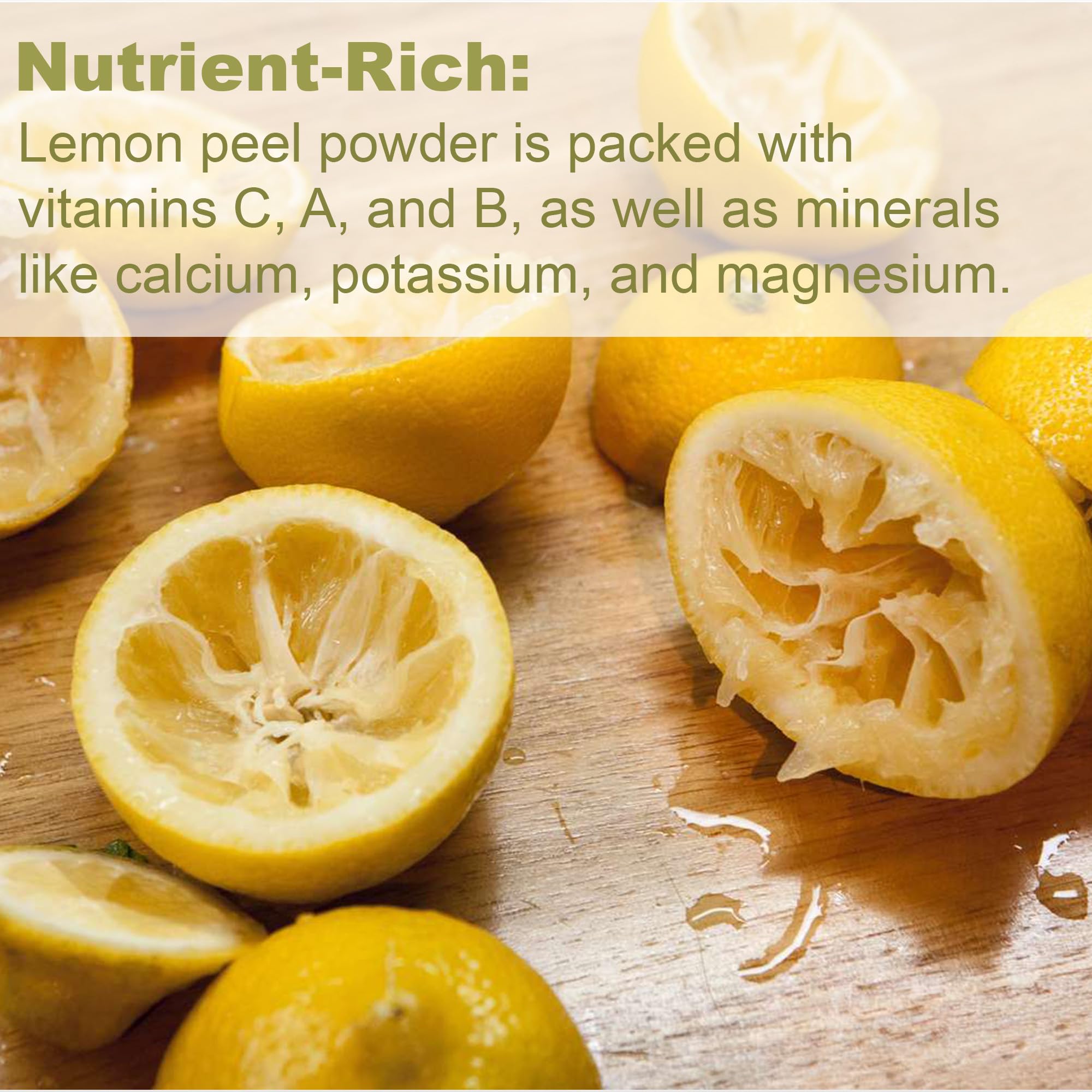 • Nutrient-Rich: Lemon peel powder is packed with vitamins C A and B as well as minerals like calcium potassium and magnesium