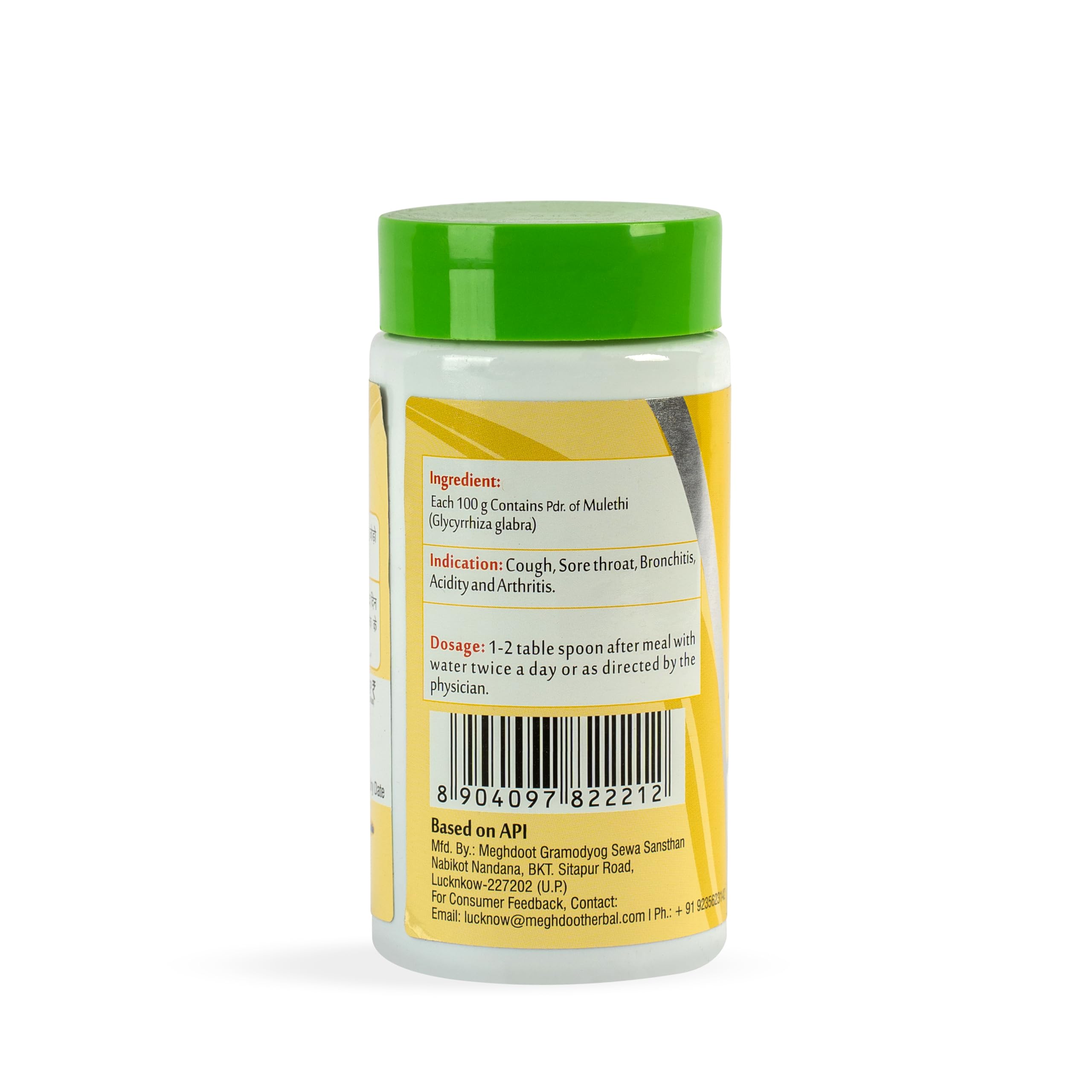 Meghdoot Mulethi Powder is a premium-quality herbal supplement made from the finest licorice roots carefully dried and finely powdered to preserve its natural properties. Known in Ayurveda for its cooling and healing effects mulethi (licorice) is widely used for enhancing skin tone supporting digestive health and strengthening hair. It helps reduce blemishes pigmentation and suntan while adding a natural glow to the skin. It can also be used as a hair conditioner to improve scalp health and prevent dandruff. Meghdoot Mulethi Powder is 100% pure chemical-free and safe for regular use. Whether used as a face mask hair pack or a herbal supplement it offers natural wellness from the inside out.