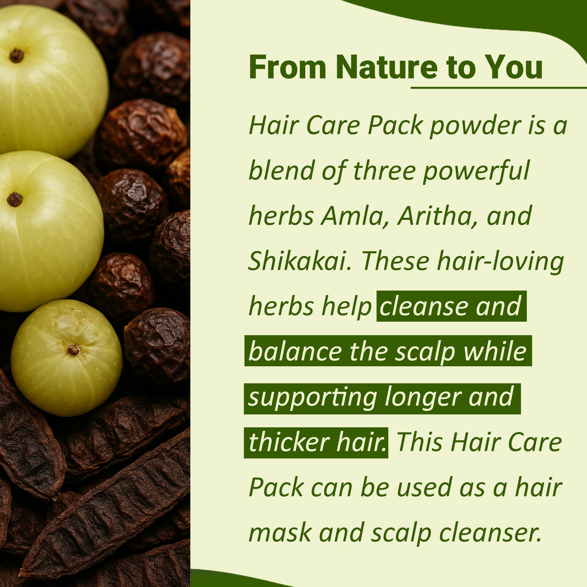 Mi Nature Hair Care Pack | 100g | Amla Aritha & Shikakai PowderMi Nature brings you a traditional herbal blend made with 100% pure and natural powders of Amla Aritha (Reetha) and Shikakai. These ingredients have been used for generations in natural hair care rituals and are valued for their gentle and effective properties.Key Features:100% Pure & Natural: Free from additives preservatives and synthetic chemicals. A clean plant-based formula for mindful hair care.Traditional Herbal Blend: Combines three time-tested ingredients Amla for scalp conditioning Aritha for natural cleansing and Shikakai for a soft smooth finish.Ideal for DIY Hair Masks: Perfect for mixing with water aloe vera or oils to create your own customized hair pastes and washes.Suitable for All Hair Types: Gentle enough for regular use by both men and women. Can be part of your weekly hair care routine.Resealable Pouch Packaging: Comes in a 100g zip-lock pouch to maintain freshness and convenience with each use.Responsible Sourcing: Mi Nature supports sustainable farming and eco-friendly practices in production and packaging.Important Note: Mi Nature's products are not intended to diagnose treat cure or prevent any disease.