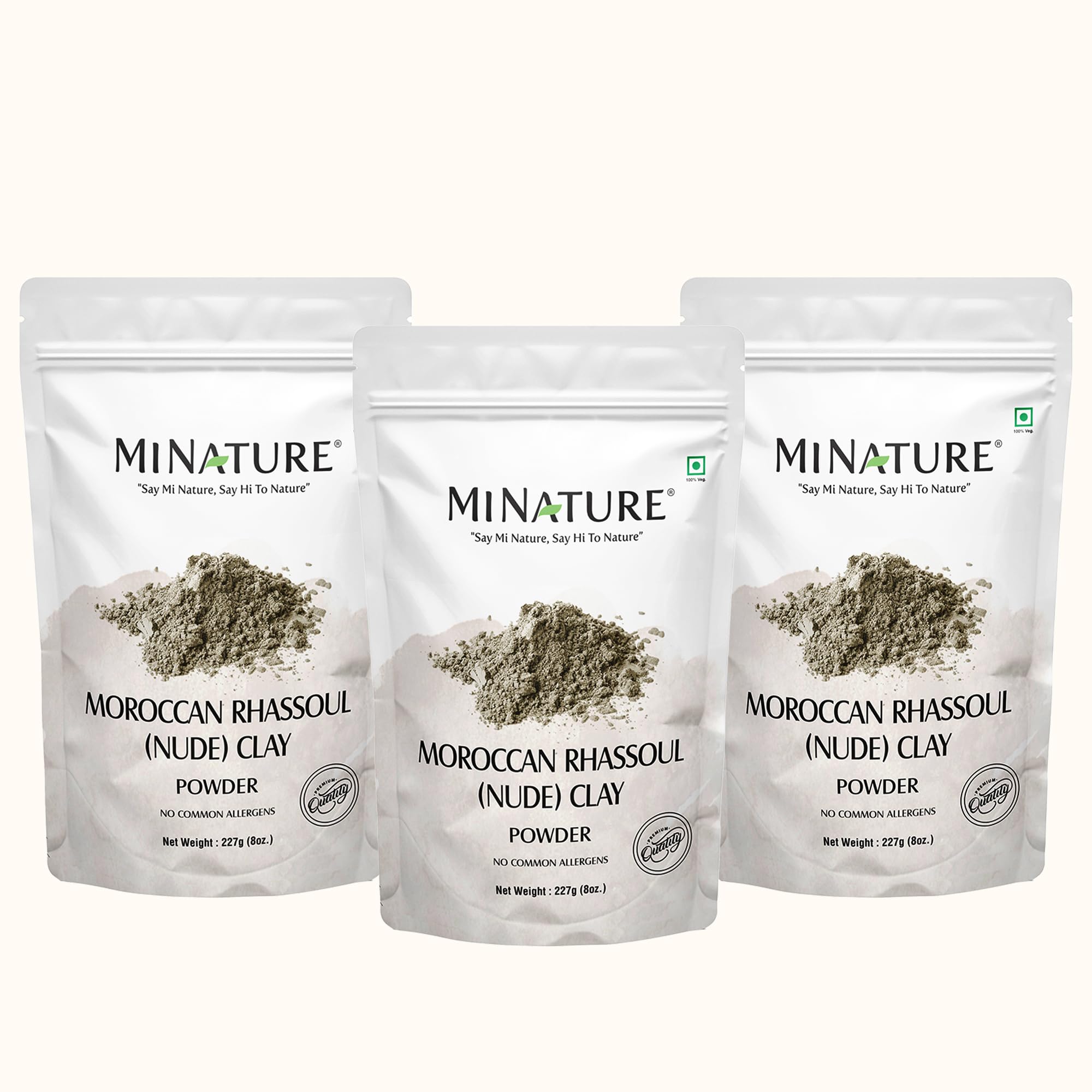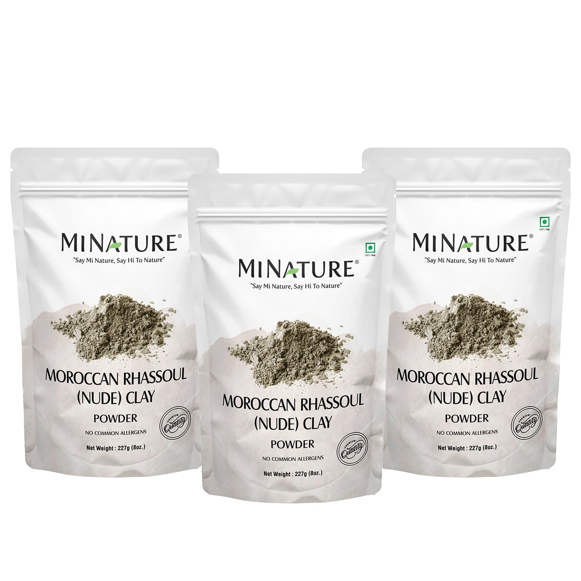 Mi Nature Moroccan Rhassoul Nude (Ghassoul) Clay Powder Pack of 3 (Each pack 227g (8oz) |Premium Face Mask & Hair Cleanser | DIY Cosmetics |Skin & Hair Care