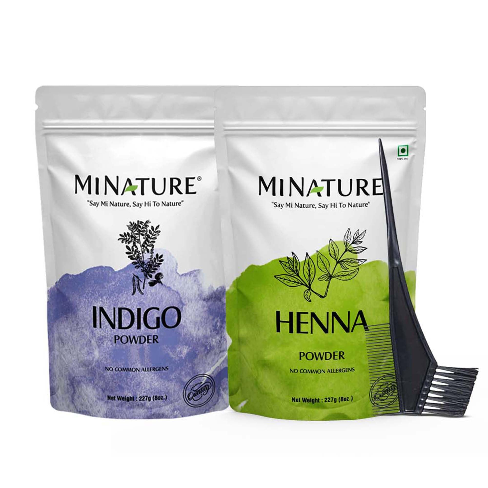 • Combo pack of 100g each of mi nature Henna & Indigo Powder for natural hair color.