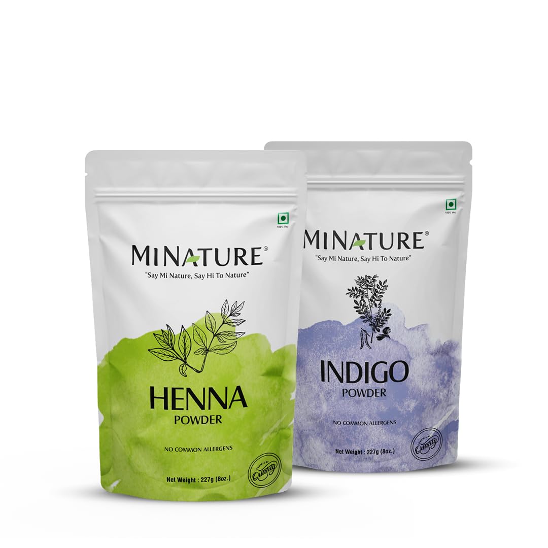 mi nature Natural Hair Dye DIY Combo | Henna & Indigo Powder |From Pure Dried Leaves| Sourced from Rajasthan for Black or Brown Colour | 227g(EACH)(Pack of 2)