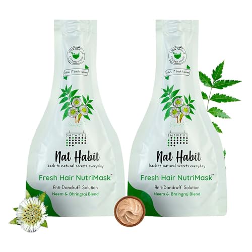 Nat Habit Neem & Bhringraj Blend NutriMask - Hair Mask For Dandruff Control, Conditioning, Smoothening, Dry & Frizzy Hair Enriched with Bhringraj, Amla, Tulsi, Neem & Curry Leaves (Pack of 2 x 40gm)