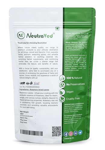 NeutraVed Rosemary Leaves are fantastic for hair care. I’ve noticed a significant improvement in my hair growth. The quality is excellent, and I highly recommend this product for its versatility and effectiveness!