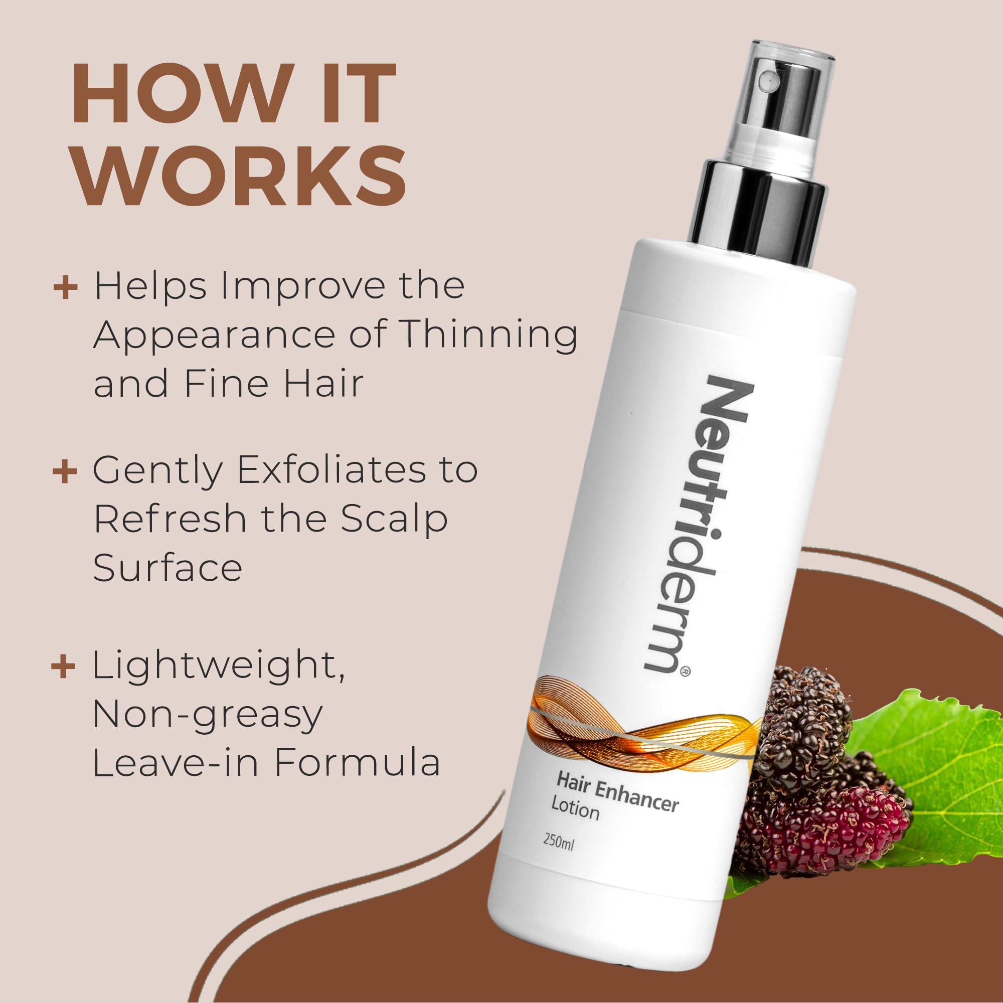 Neutriderm Hair Enhancer Lotion, Restores, Revitalizes & Thickens Dry, Weak & Damaged Strands, Nourishing Volumizing Hair Lotion, Treatment for Men & Women, 250ml (8.45 fl oz)