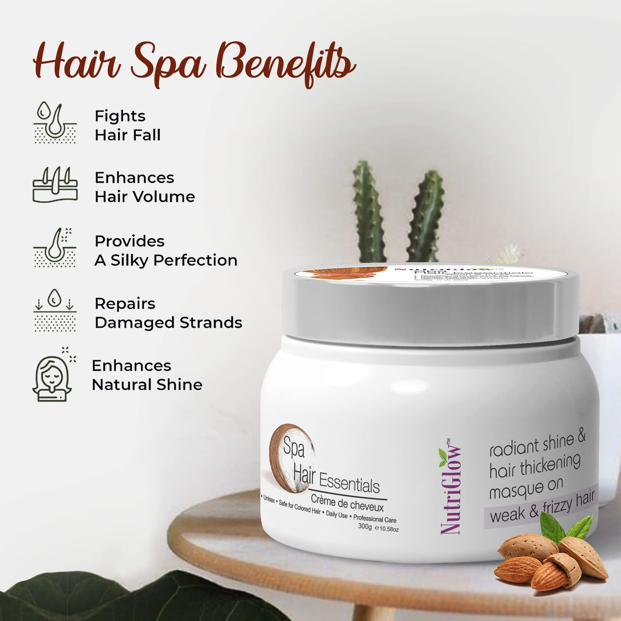 Nutriglow Hair Spa Cream With Volumizing & Shine Lock Formula For Weak & Frizzy Hair 300g