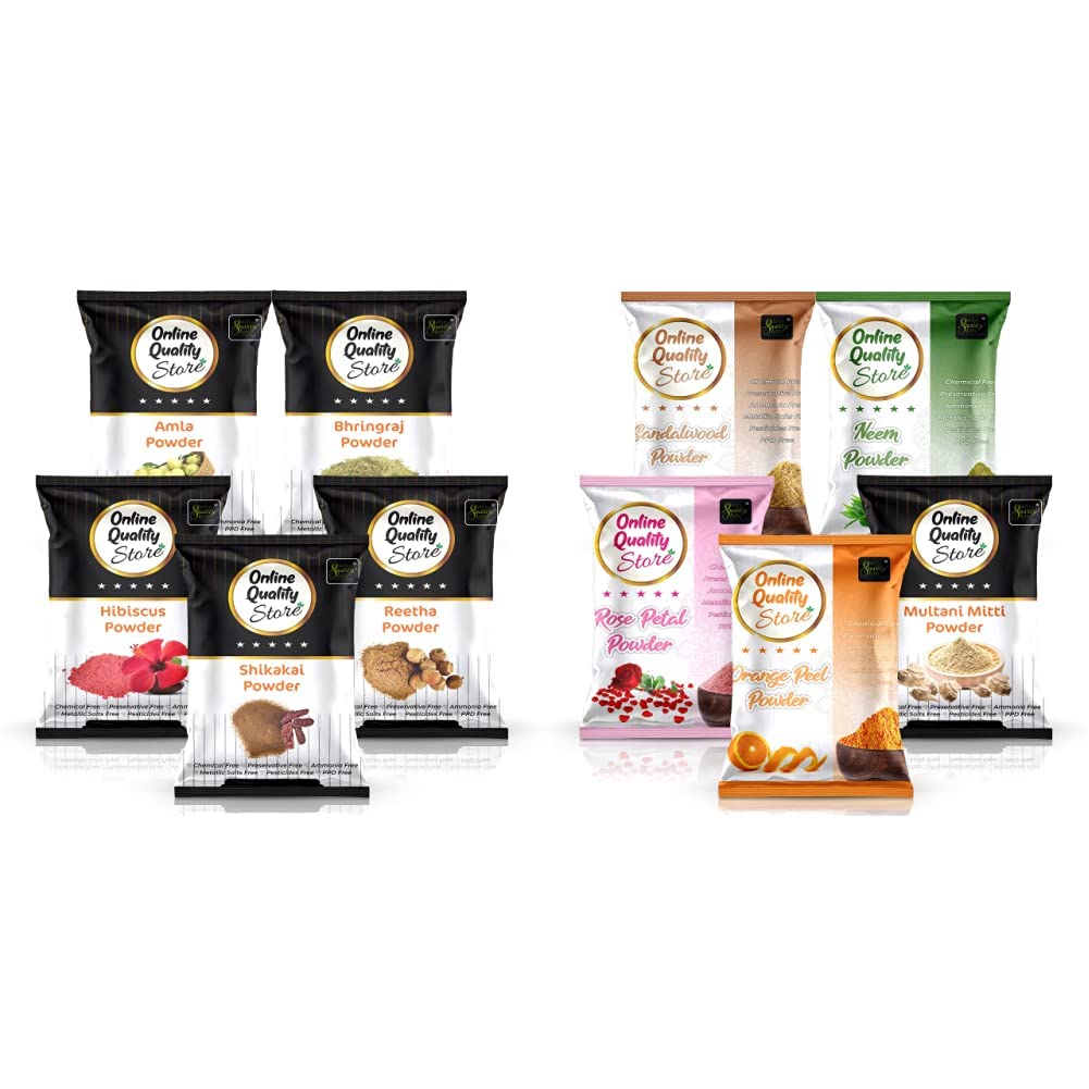Online Quality Store Amla Reetha Shikakai Bhringraj and Hibiscus Powder for Hair 400gThis handmade powder is best hair remedy. This product is suitable for all hair types for making hair strong for dry brittle hair for sticky oily hair for hair's shine for thick growing hair for soft and silky hair. Both Mens and women's can use. Apply on hairs and you will see good results.It lessens dryness and roughness reduces hair fall and make your hair shinier. It adds ricochet to your hair and is enhanced with the integrity of Shikakai which can likewise lessen untimely turning gray and control an irritated scalp. The shampoo gives enormous foams that in the end reduce out the oil dirt dust off the scalp and the hair.