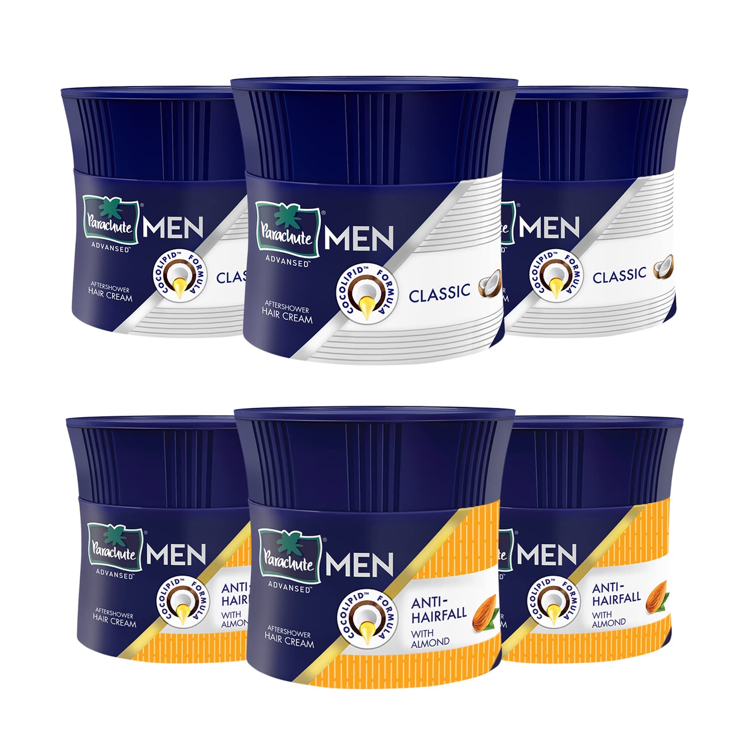 Parachute Advansed Men Hair Cream Classic 100g (Pack Of 3) & Men Hair Cream Anti-Hairfall With Almond 100g (Pack Of 3)