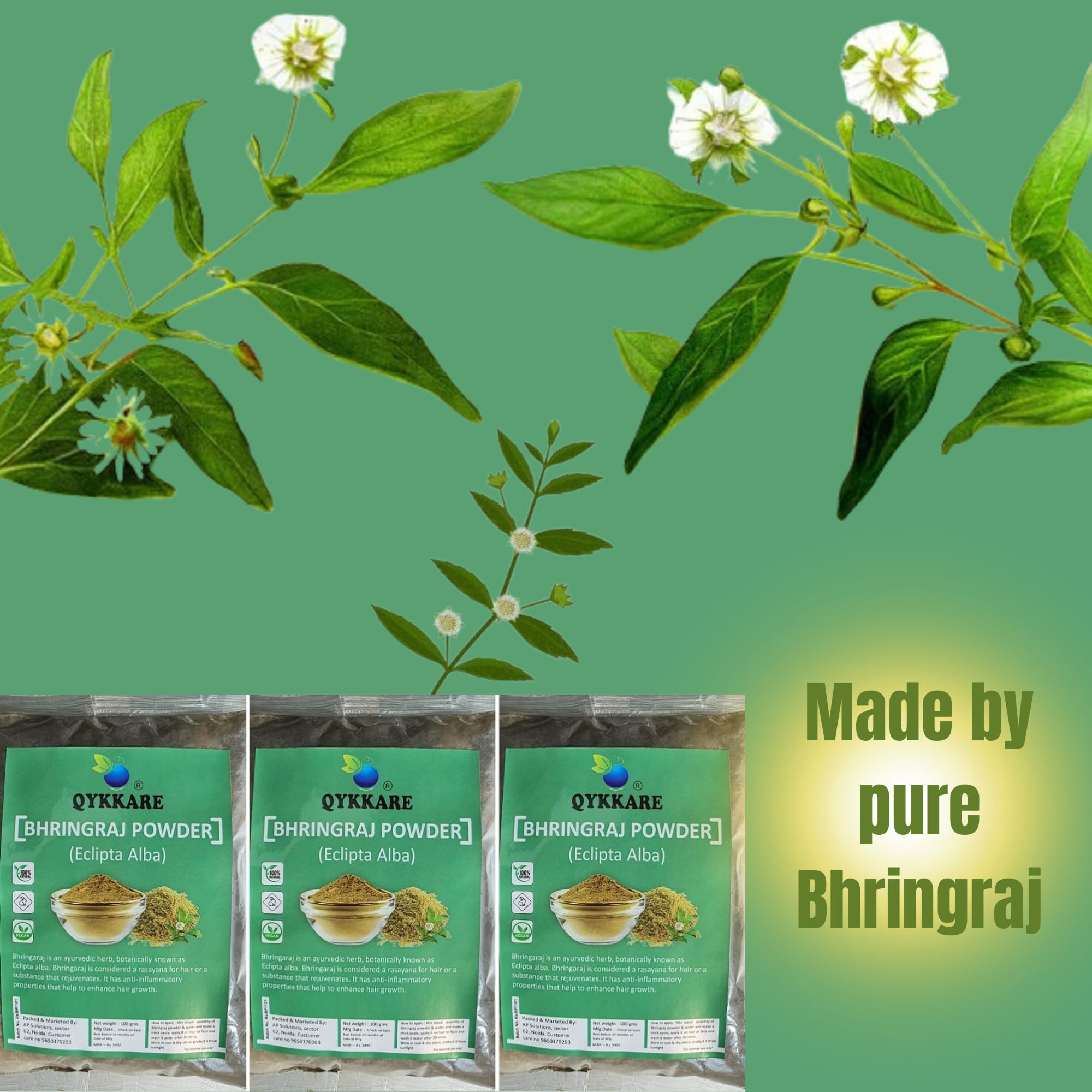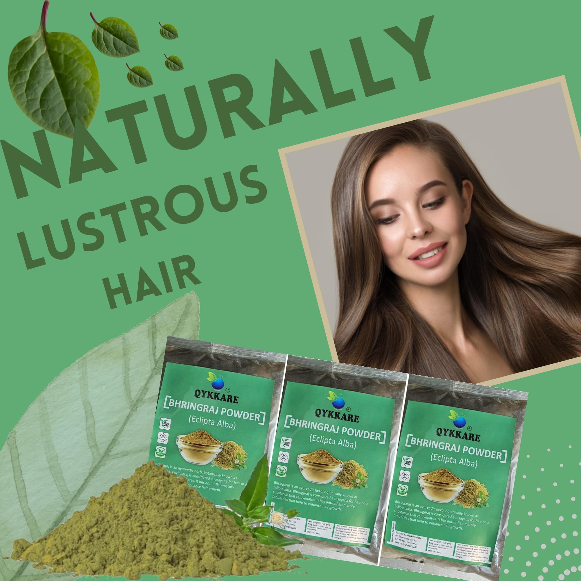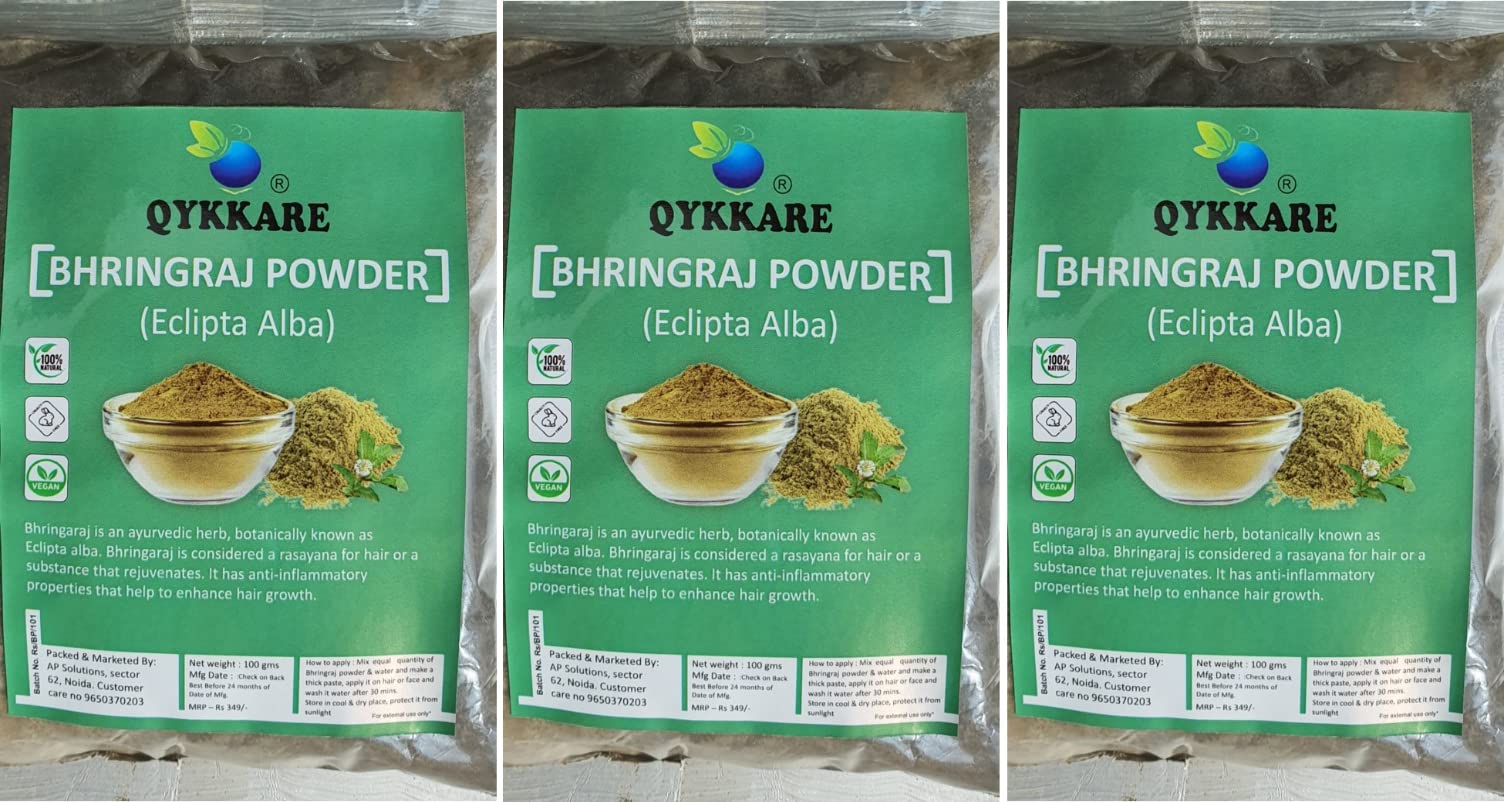 QYKKARE Bhringraj Powder for Hair Growth and Scalp Care | Skin Nourishment 300 GM (100gm x 3)