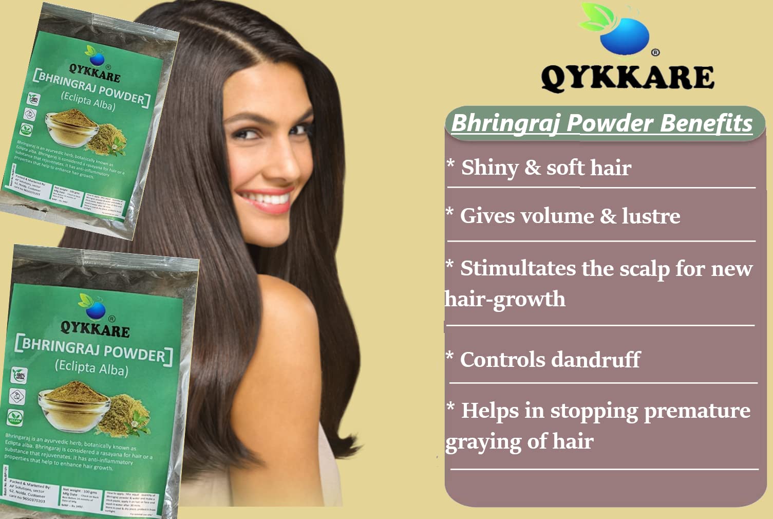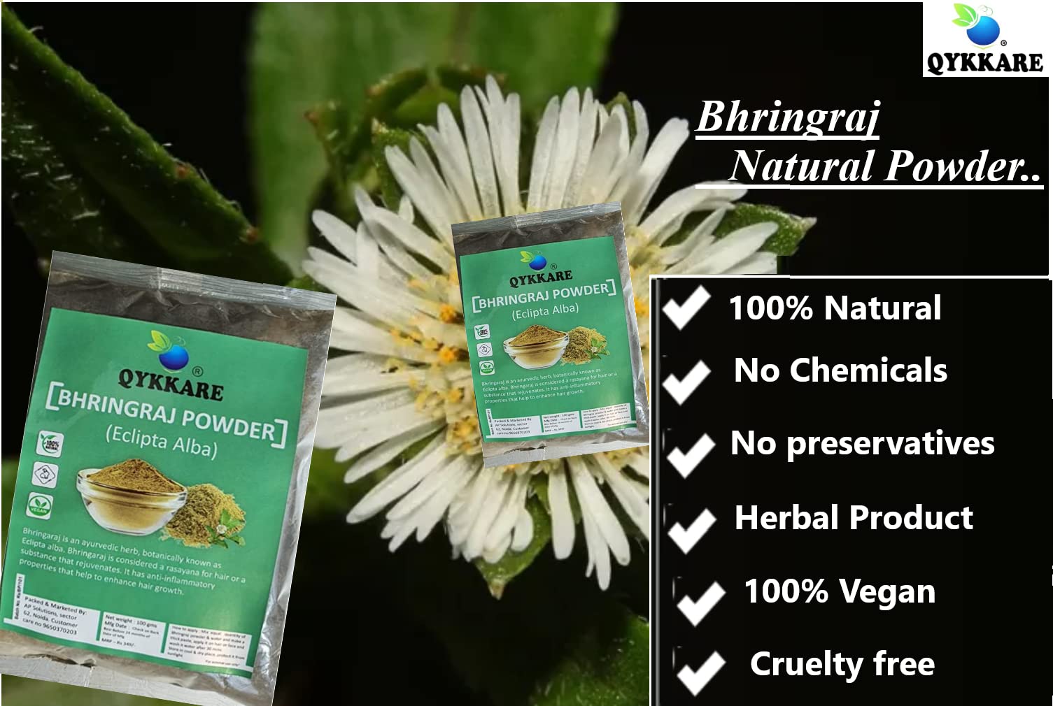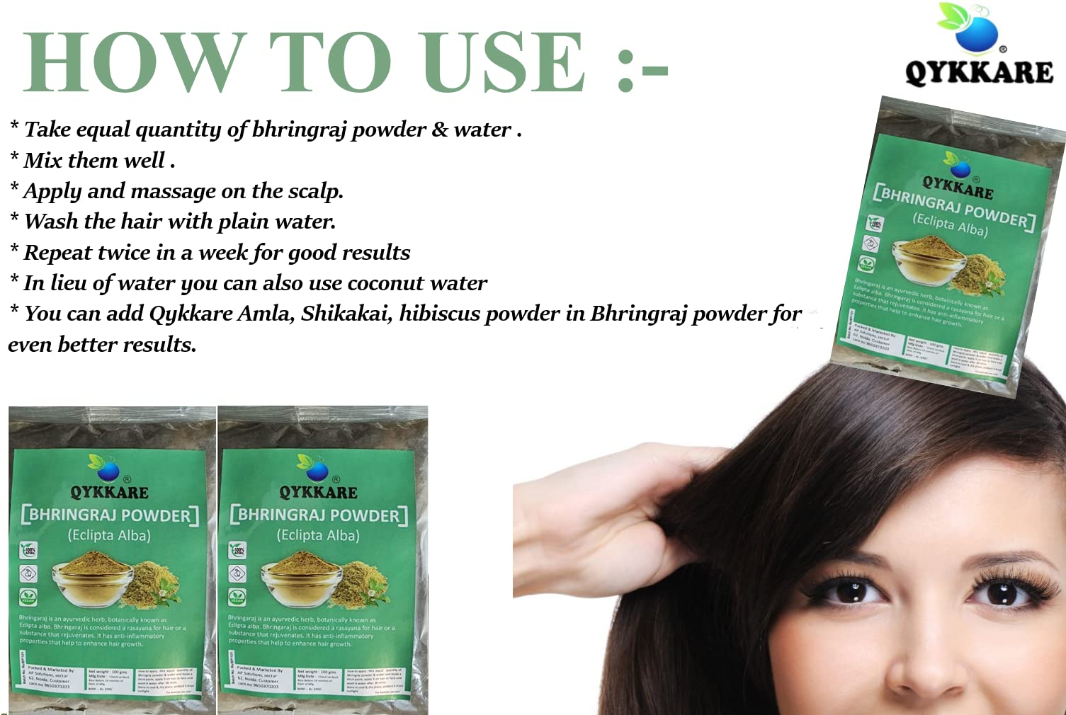 QYKKARE Bhringraj Powder for Hair Growth and Scalp Care | Skin Nourishment 300 GM (100gm x 3)