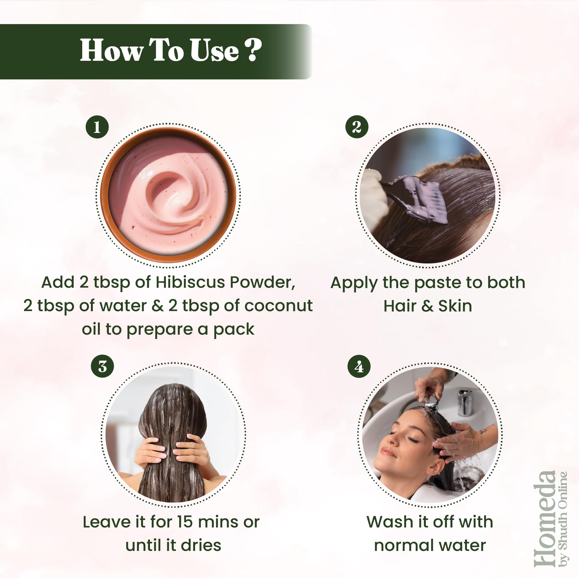 Shudh Online Hibiscus powder is known for its pleasant fragrance and the aromatic properties. It is used as prime herb in various herbal cosmetic formulations for hair. Many people use it with to give a aroma and refreshing feeling to hair. It acts as a natural conditioner for hairs and maintains the strength color & texture of hairs. Have numerous effect on skin can be used as face pack also. also known as Hibiscus powder for Hair Gudhal ka Phool ka powder Mandaram powder Hibicus powder hair Fancy CoverHibuscus powder Gora flower powder Gulhar flower Hibicus powder for stone Hybiscus power Hisbiscus Arhul flower powder Sorrel. Shudh Online products are selectively sourced with great emphasis on purity and authenticity and are 100% natural ayurvedic products. We don't add any or additives in the product and using our product will get you closure to nature.