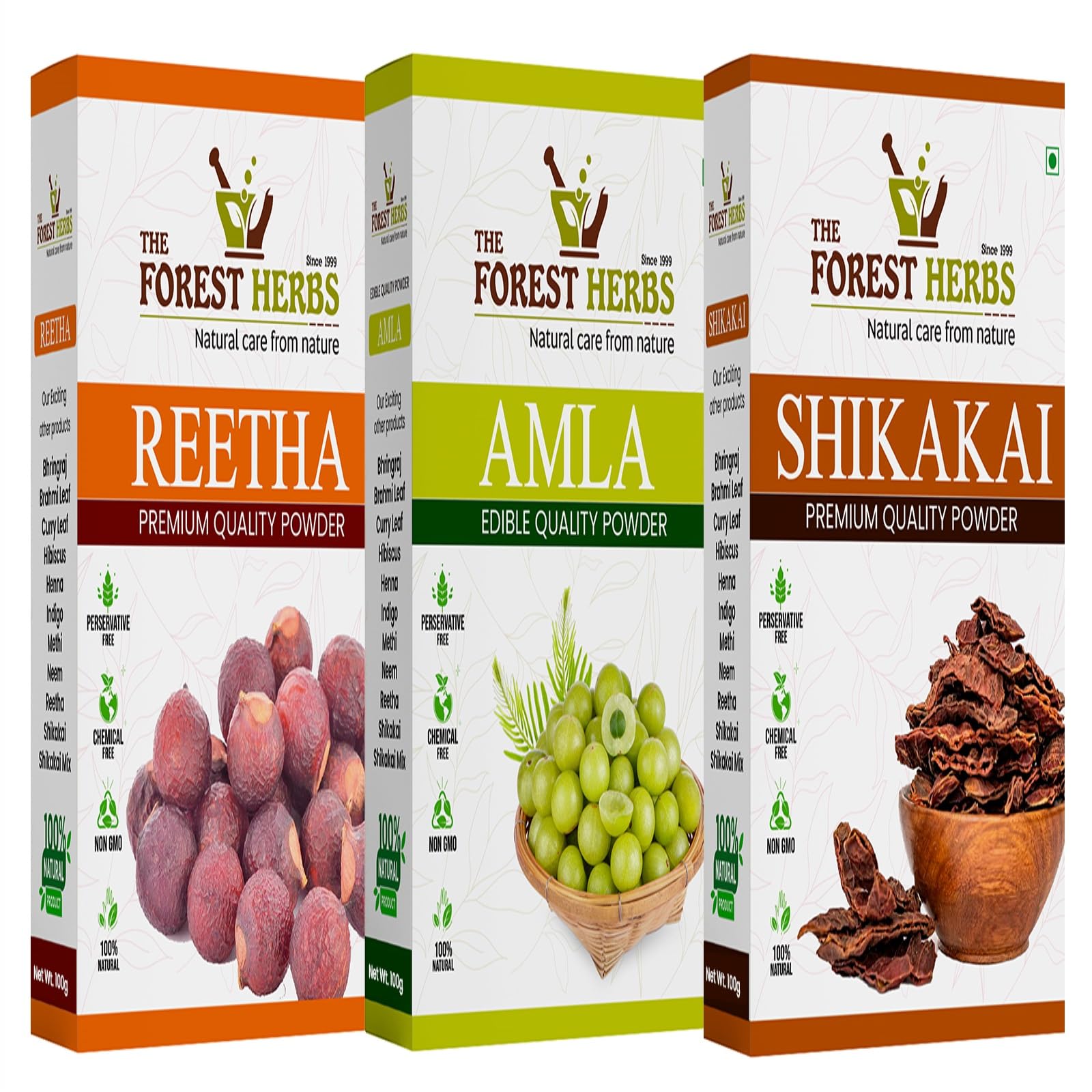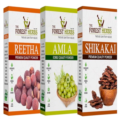 HomeHealth & PersonalHair CareHair MasksTHE FOREST HERBS Natural care from nature 100% Natural Organic Amla, Reetha, Shikakai Powder For Hair Care For All Hair Type, 300G (Pack Of 3), 3 Count