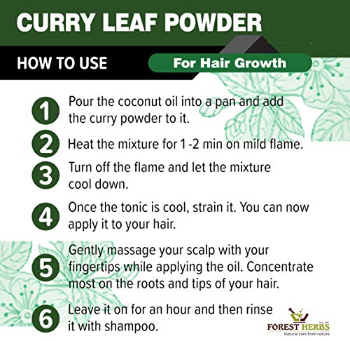 Curry leaves are rich in antioxidants that moisturize the scalp while getting rid of dead hair follicles . They are a good source of proteins and beta-carotene both of which prevent hair loss and thinning . The leaves are also rich in amino acids that help strengthen follicles and keep them healthy . How to make curry leaves hair pack 1. Boil coconut oil with curry leaves powder for acting As A Hair Tonic. 2. Curry leave powder with yogurt As A Hair Mask.