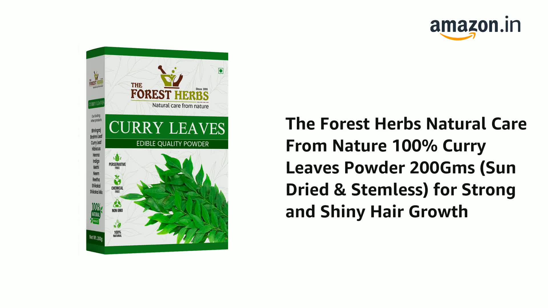 The Forest Herbs Natural Care From Nature 100% Curry Leaves Powder 200Gms (Sun Dried & Stemless) for Strong and Shiny Hair Growth