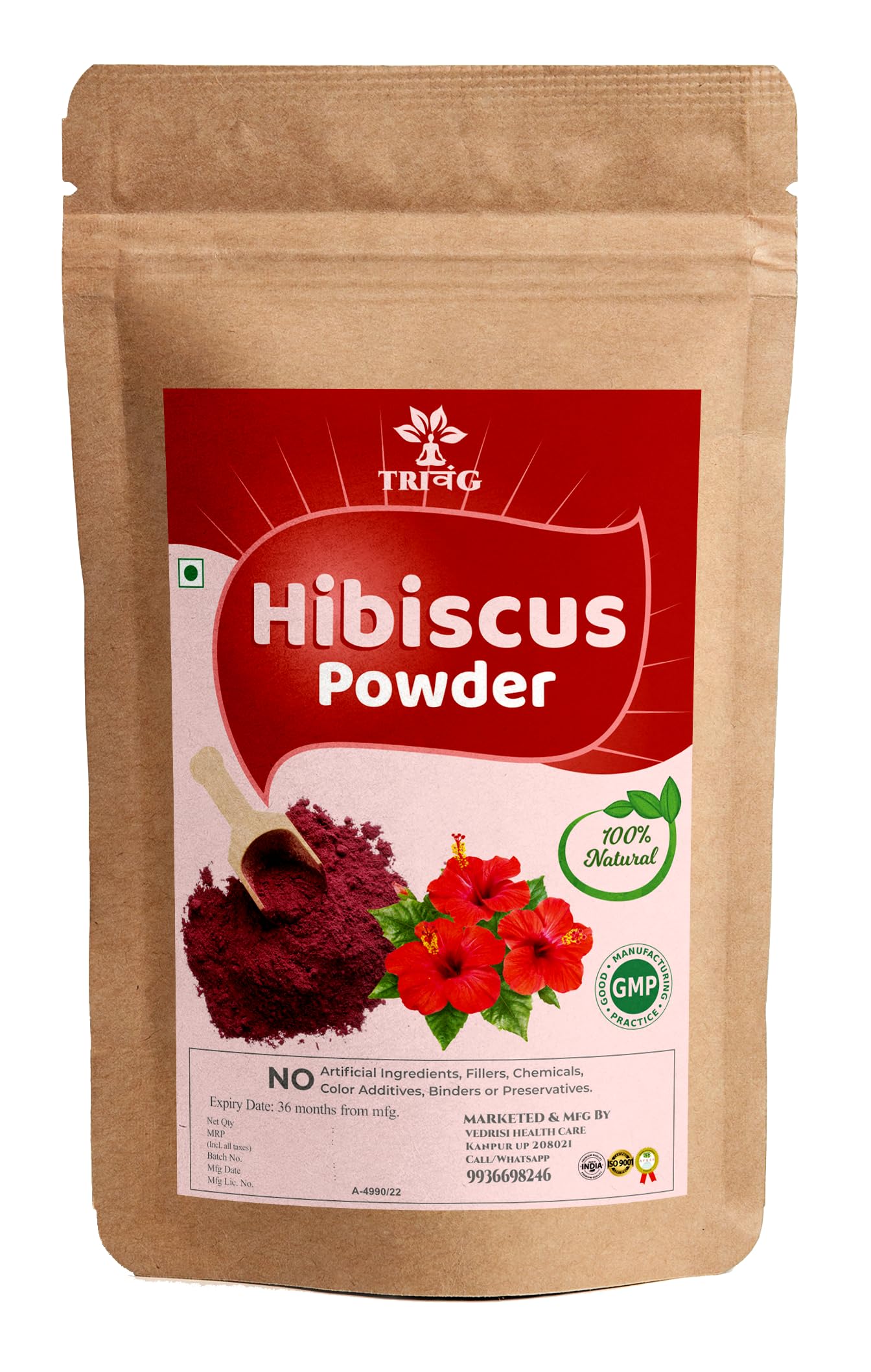 Trivang Hibiscus powder for hair growth (150 Grams) | Suitable for Hair pack Hair oil Face pack and Hibiscus Tea 100% Natural