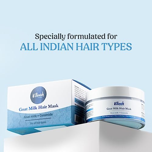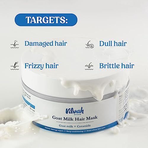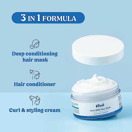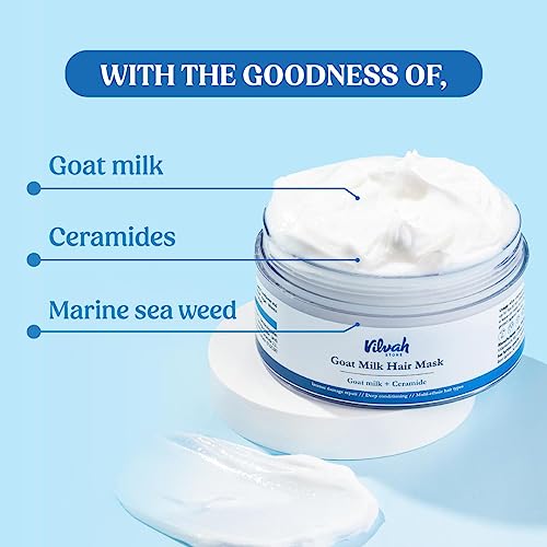 vilvah STORE Goat Milk Hair Mask | Deep Nourishing | Fresh Hair Mask Provides Damaged Deep Conditioning & Strength | Curl Or Styling Cream | Powered With Goat Milk | For Women & Men | 200 Gm,1 Count