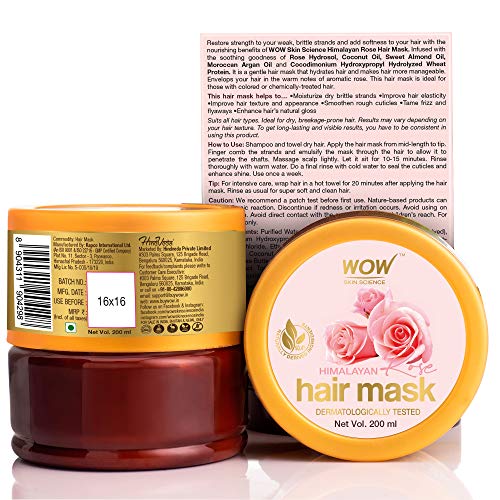 WOW Skin Science Himalayan Rose Hair Mask with Rose Hydrosol, Coconut Oil, Almond Oil & Argan Oil - For Volumnising Hair, Anti Smelly Scalp - No Parabens, Sulphate, Silicones, Color & PEG - 200mL
