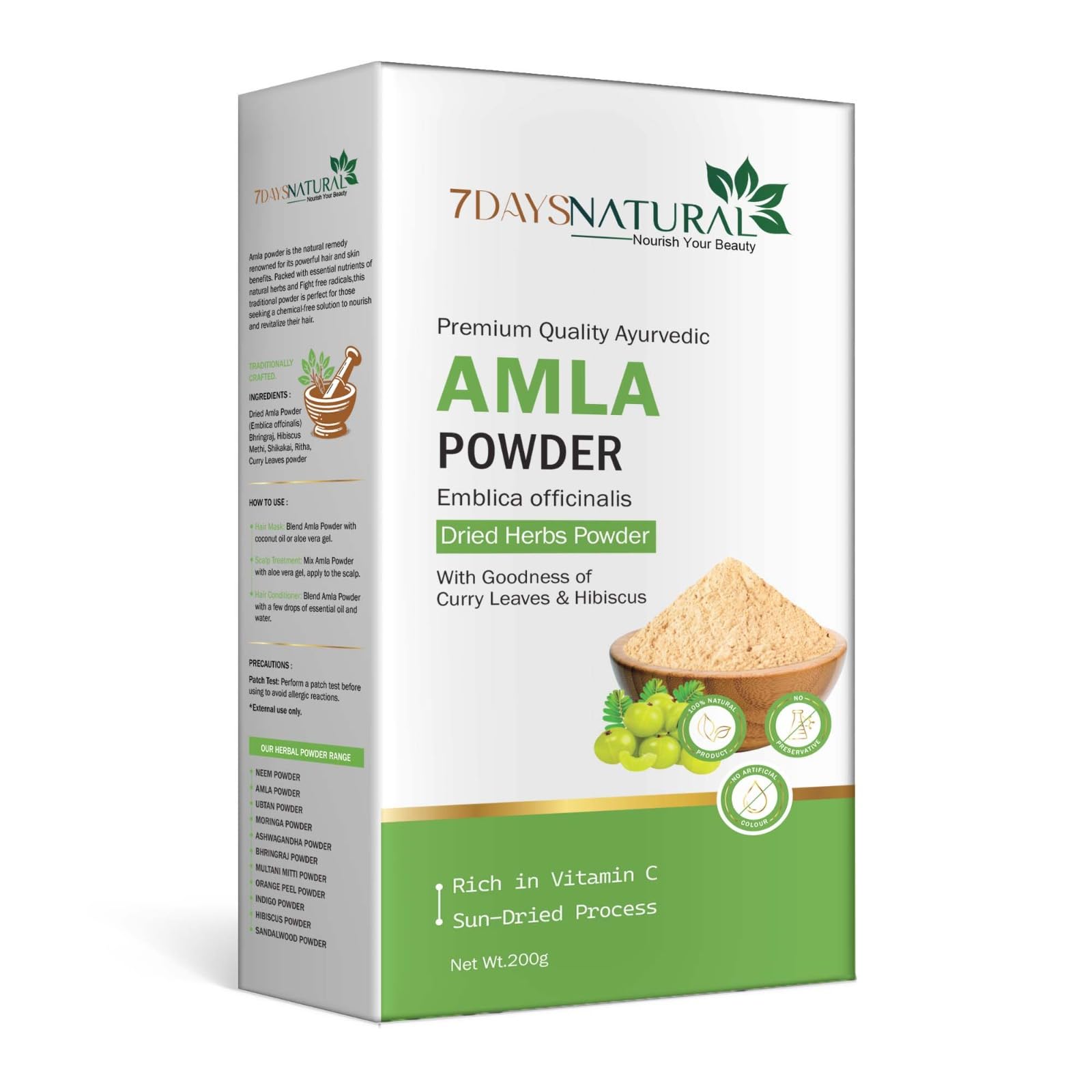 7 DAYS Amla powder for Skin & Hair Care, Pure & Natural Gosseberry Powder | 100% Pure, Natural & No Preservative - 100g (Pack of 2)