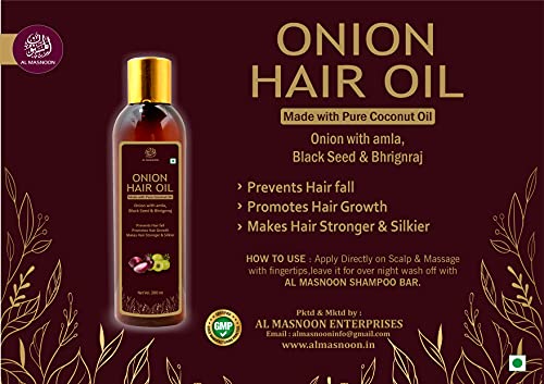 AL MASNOON Onion Hair Oil prevents hair fall promotes hair growth makes hair stronger & silkier 200ML