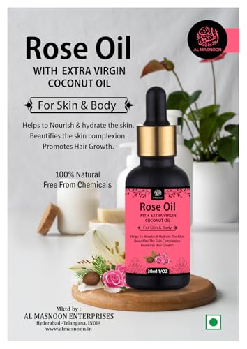 Al Masnoon Rose Oil Infused with Extra Virgin Coconut Oil for Skin & Hair - 100% Natural | 30ml Pack of 1