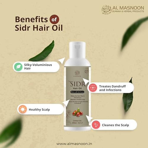 Al Masnoon Sidr Hair Oil - Made with Natural Sidr Leaves 100% Natural Mineral Oil Free 200ml (Pack of 1) for Strong and Healthy Hair.