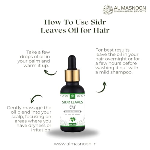 Experience the timeless healing power of Sidr Leaves expertly infused in pure Olive Oil to create a versatile all-natural oil ideal for body hair beard and spiritual protection (Ruqya). This oil is rooted in prophetic and traditional remedies where Sidr (Ziziphus) leaves have long been recognized for their purifying protective and healing properties. AL MASNOON Sidr Leaves Oil is handcrafted in small batches to ensure the highest quality. The combination of Sidr and cold-pressed olive oil offers deep nourishment strengthens hair and beard soothes skin irritations and is often used in spiritual cleansing rituals (Ruqya) to combat negative energy and maintain spiritual wellness.