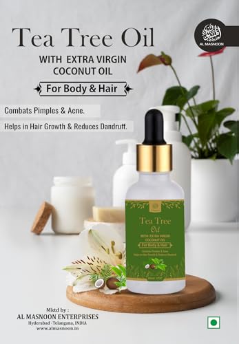 Elevate your self-care routine with Al Masnoon Tea Tree Oil with Extra Virgin Coconut Oil your go-to solution for healthy skin nourished hair and overall well-being. Perfect for those seeking natural remedies for skin and hair concerns.Experience the potent combination of Al Masnoon Tea Tree Oil with Extra Virgin Coconut Oil meticulously crafted to enhance your body and hair care regimen naturally. This 30ml bottle offers a harmonious blend of organic essential oils renowned for their therapeutic benefits.