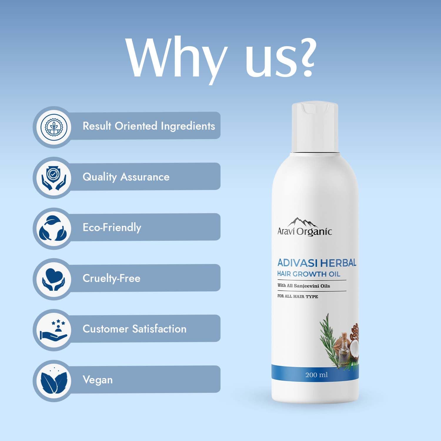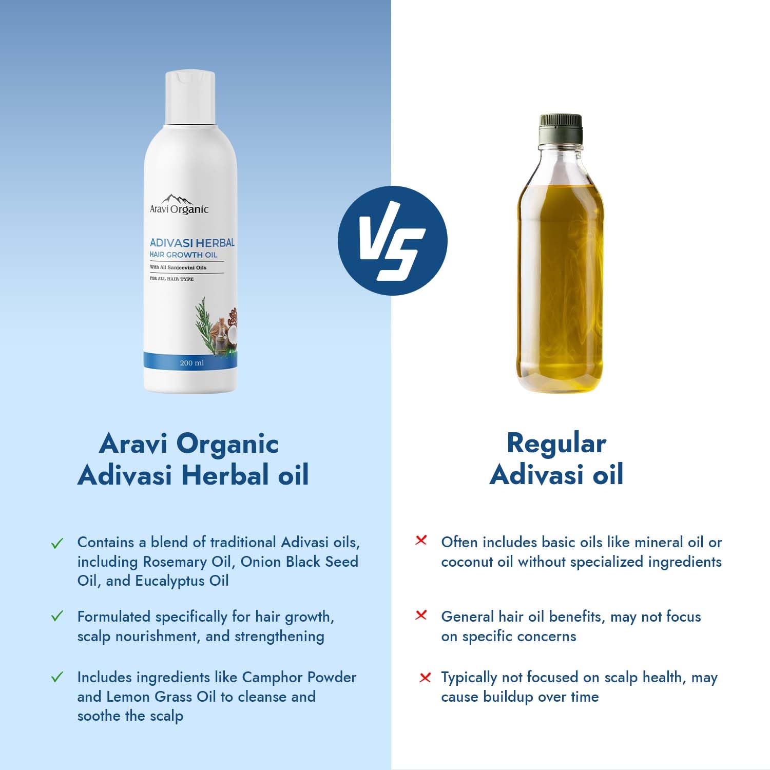 Aravi Organic Adivasi Herbal Oil - For Quick Hair Growth & Control Hair Fall - For Women and Men - 200 ml