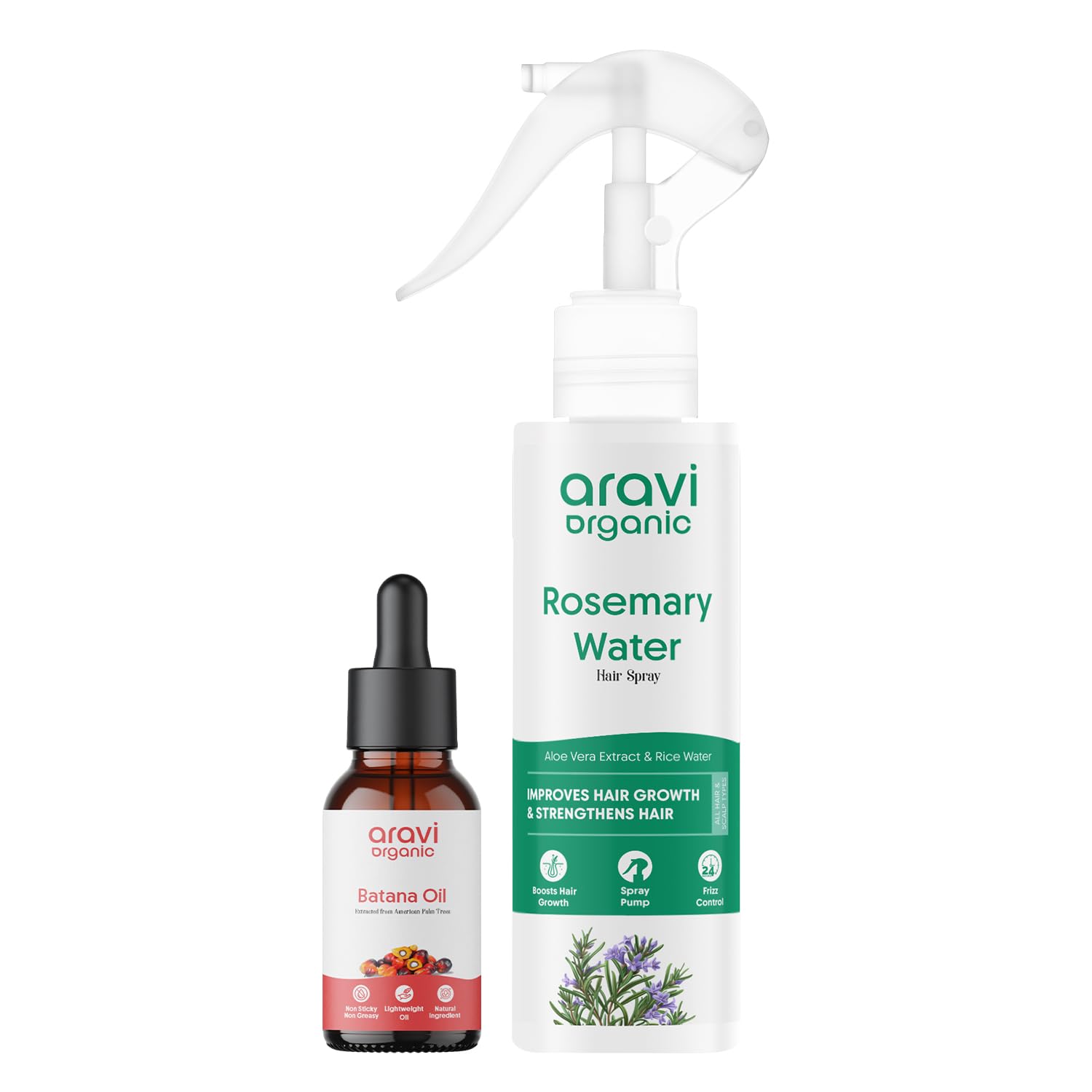 Revitalize your hair and scalp with the Aravi Organic Batana Hair Oil & Rosemary Water Spray Combo a powerful blend of deep nourishment and natural stimulation for stronger shinier and healthier hair