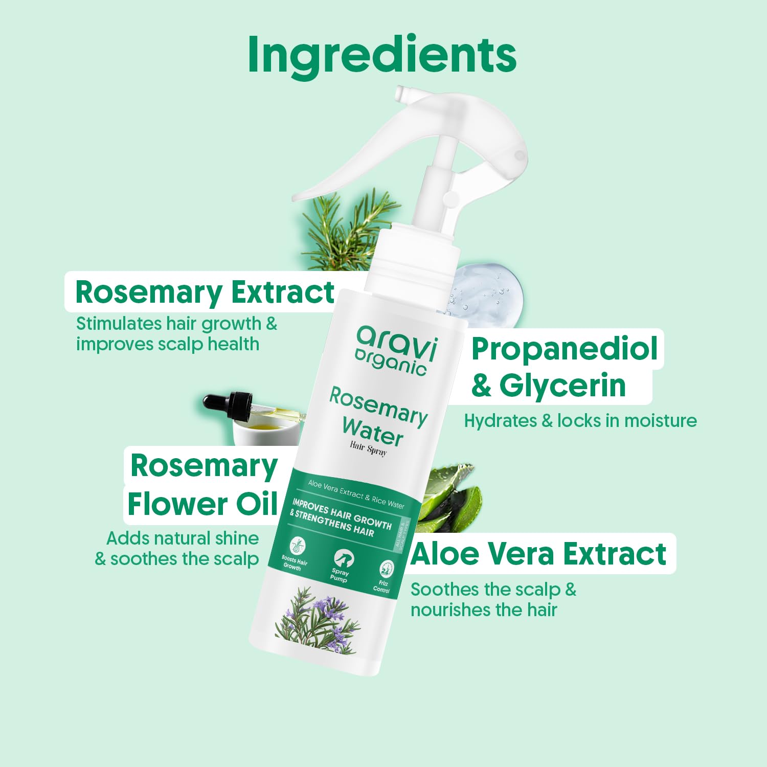 Stimulates Growth Rosemary Water boosts scalp circulation for healthy hair regrowth.