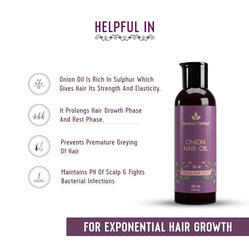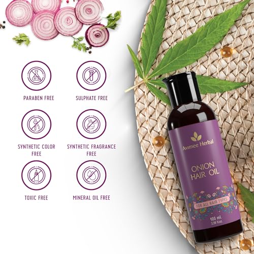 Avimee Herbal Keshpallav Onion Hair Oil | For Long & Strong Hair | With Red, Black, Yellow & Green Onion Seed Oil | Mineral Oil & Fragrance Free | 100 ml