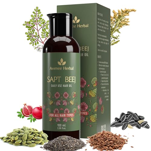 Complete hair nutrition containing all types of minerall essentiand non-essential amino acids (Proteins) vitamins and fatty acids required for hair growth with extra absorbency power. Avimee Herbal Sapt Beej Hair Oil is specially formulated for daily use. Non-sticky and non-greasy it nourishes and hydrates the scalp while strengthening the hair follicles. A 100ml bottle contains the perfect amount for frequent touch-ups giving you gy healthy-looking hair every day.