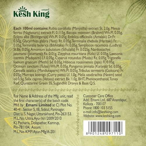 Kesh King Ayurvedic Scalp & Hair Oil is a proprietary medicinal preparation to reduce hair fall and increase the growth of new hair. It is a natural and herbal oil consisting of 21 Ayurvedic herbs like Bhringraja which promotes hair growth and blood circulation Amalki which gives strength to hair Methi which prevents hair loss Jatamansi which prevents greying of hair etc. Kesh King is clinically proven to be 2X more effective than other ayurvedic oils and presents as a complete hair care solution by reducing hair fall promoting the growth of new hair reduces dandruff and prevents greying of hair. It comes with a root comb for deeper and proper application of hair oil. Visible results can be seen with regular use of Kesh King Hair Ayurvedic Hair Oil for 3 months.