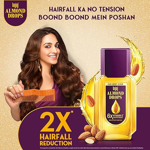 Bajaj Almond Oil Drops offer the key to healthier, more resilient hair with remarkable benefits. Proven to reduce hair fall by 2X and increase shine by up to 50%, this hair oil is enriched with 6X the goodness of Vitamin E. Almond oil, renowned for its nourishing properties, provides your locks with the care they deserve while simultaneously nurturing your scalp, creating an optimal environment for strong, healthy hair growth. The inclusion of 6X Vitamin E offers potent protection against external damage, ensuring your hair remains resilient. What sets it apart is its non-sticky formula, combining the goodness of almond oil and Vitamin E without leaving any sticky residue, so you can enjoy the benefits of strong, healthy hair without any inconvenience.