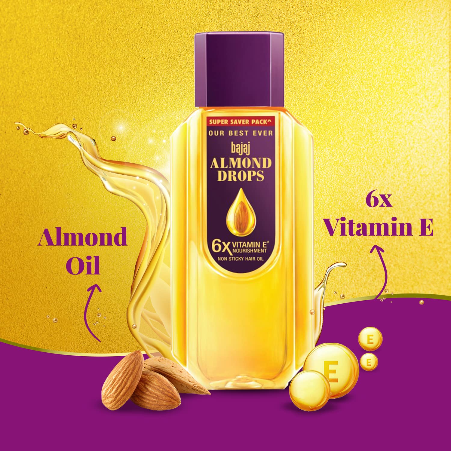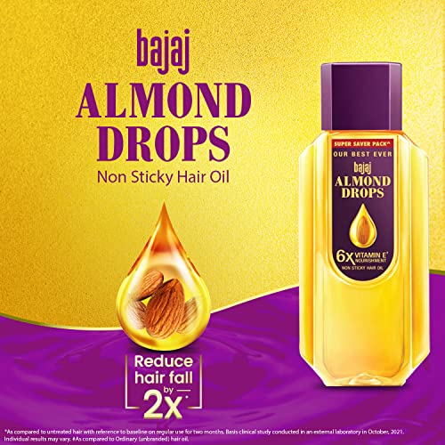 • 2X HAIRFALL REDUCTION: Bajaj Almond Drops Hair Oil is your secret to stronger hair. Proven to reduce hair fall by 2X. This hair oil is your path to healthier hair with 6X the Vitamin E goodness